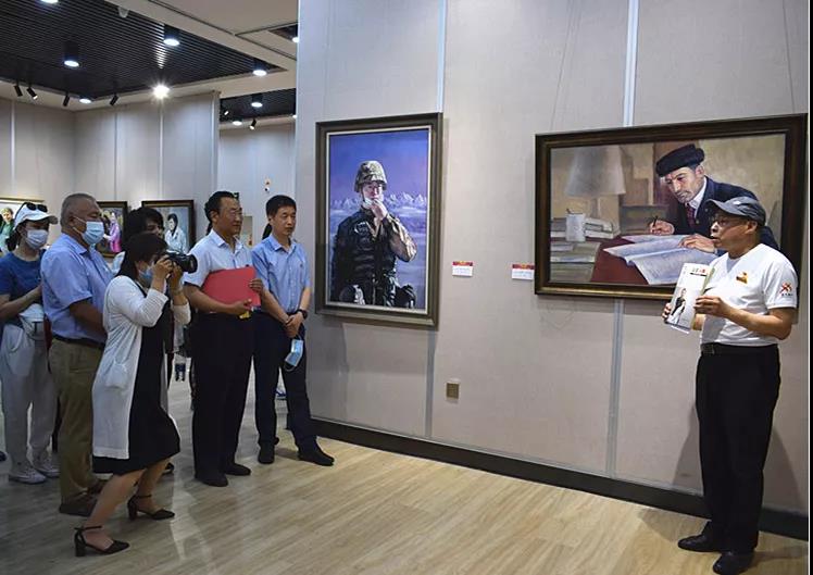 油畫肖像的創作者,中國美術家協會會員、烏魯木齊市文化館黨支部書記李強滿懷激情向大家講述了他的創作初衷和經歷。8年前,李強滿懷對黨和祖國的無限熱愛、對英雄模范的無比崇敬和對社會的責任感,開始著手創作紅色主題油畫系列。展廳展出的是他創作的包括偉人系列、時代英模系列以及時代精神群像系列的100幅畫作。