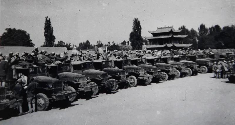 老戰士張明儒在回憶錄里這樣描述當年的進軍場面:“那是一幅何等壯觀的歷史畫卷啊——天上飛機(蘇聯援助)轟隆作響,地上汽車突突奔馳,高頭大馬昂首嘶鳴,桿桿紅旗迎風飄揚……”