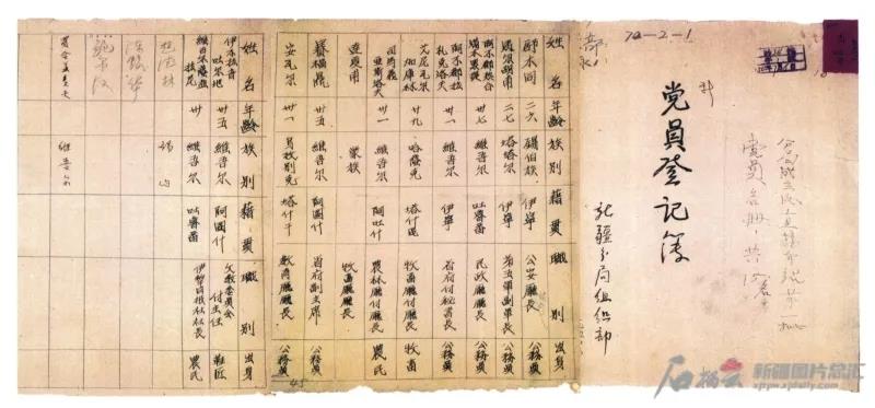 在自治區(qū)檔案館,收藏著這樣一份珍貴的黨員登記簿:泛黃的紙上,賽福鼎·艾則孜、包爾漢·沙赫德拉、陳錫華等15名黨員的姓名、族別、年齡等信息清晰可見。“他們是黨在新疆各民族中發(fā)展的第一批中國(guó)共產(chǎn)黨黨員,發(fā)展日期是1949年12月。”4月30日,自治區(qū)檔案局開發(fā)利用處處長(zhǎng)郭紅霞向記者道出這份檔案的特殊之處。