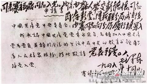 1949年9月,賽福鼎·艾則孜作為新疆代表,到北京參加中國(guó)人民政治協(xié)商會(huì)議。隨后,他向中共中央鄭重提交入黨申請(qǐng)書。毛澤東在他的入黨申請(qǐng)書上批示:“同意賽福鼎同志入黨,此信由賽本人帶交彭德懷同志,即存彭處。待新疆分局成立后,由賽同志向分局履行填寫入黨表手續(xù)。”