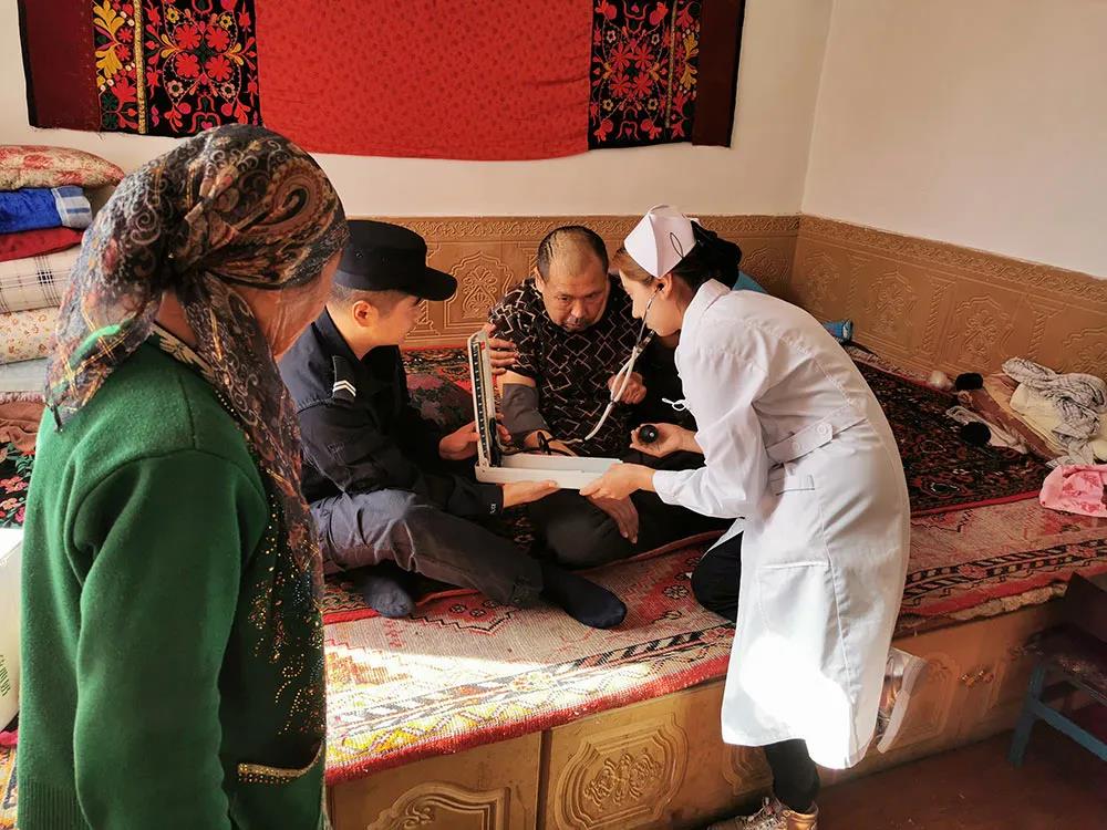 三年前,阿合力別克的父親患上了腦血管硬化,需要大筆醫療費。徐磊通過鄰居的口中得知此事后,一邊積極幫助其聯系伊寧市的醫院,一邊發動派出所民警以及駐地政府機關捐款,并第一時間通知阿合力別克的父親到醫院就醫。但阿合力別克的父親卻遲遲不肯去醫院,徐磊看到阿合力別克父親的眼神,心理似乎明白了什么,真誠地說:“阿塔(哈語:爸爸的意思),這些錢就當大家借您的,您先看病,病好了才有機會還我們呀!”