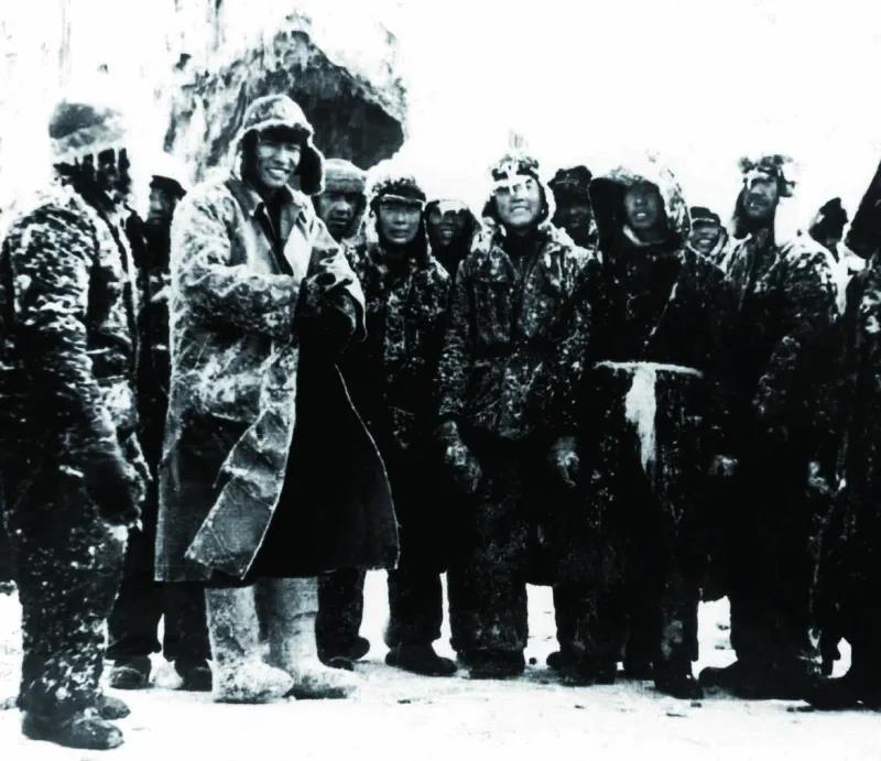 長達60個小時的搶險成功后,工人們合影留下了這張照片。照片中,大家渾身上下被冰雪覆蓋,儼然一個個冰雪雕塑。身后的井架也被冰雪覆蓋成為冰塔,但每個人的臉上都掛著笑容。