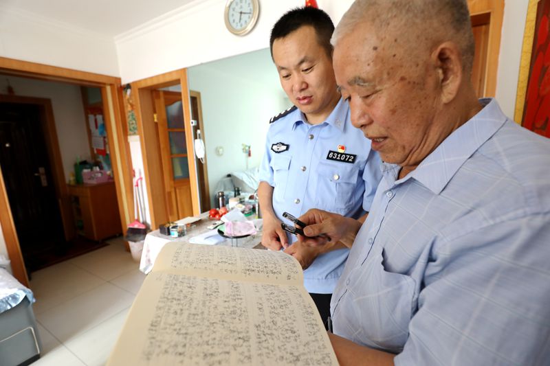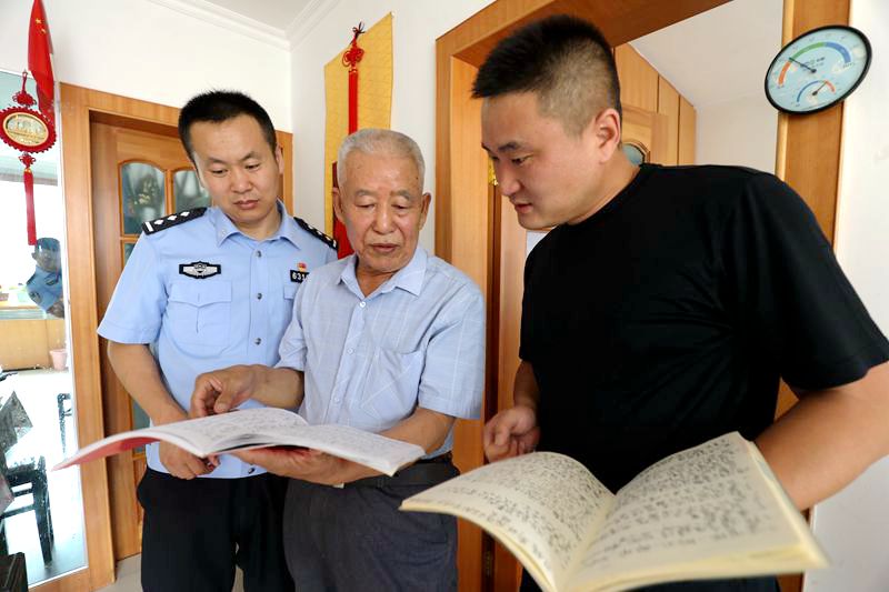 期間,民警與老人親切交談,聊家常,詢問老人飲食起居與身體健康情況,認真聆聽了老黨員的奮斗經歷,共同回顧了阿勒泰地區發展歷程。馬立明老人向民警展示了他退休后自學的80本學習筆記。當談到當前正在進行的黨史學習教育,馬立明老人語重心長的講道,“黨史學習,回顧革命歷史,就是讓當代的黨員汲取先輩的精神力量,不忘來時的路,不忘初心使命,踏踏實實干事,清清白白做人!作為新時代的移民管理警察,你們要保一方平安,責任重大,希望你們能把無私奉獻、不畏艱險、一心為民的精神帶到工作中去,發揮一名黨員應有的先鋒模范作用。”