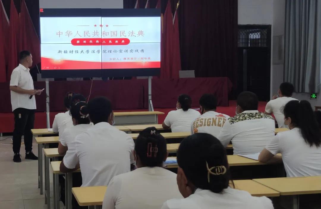 新疆財經大學法學院理論宣講實踐團成員帶領村民學習《中華人民共和國民法典》。其間,宣講團成員重點講解了民法典合同編、婚姻家庭編中與村民生活息息相關的法律條款,并現場答疑解惑。宣講團成員還向村民發出倡議:努力學法、科學用法,弘揚法治精神,維護法律權威。(法治號)