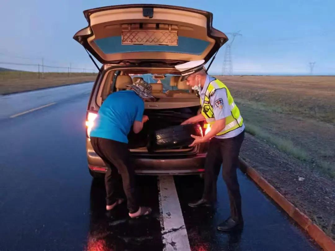 7月4日至今,大隊(duì)民輔警幫助群眾換輪胎20余次,接受各類求助上百起。