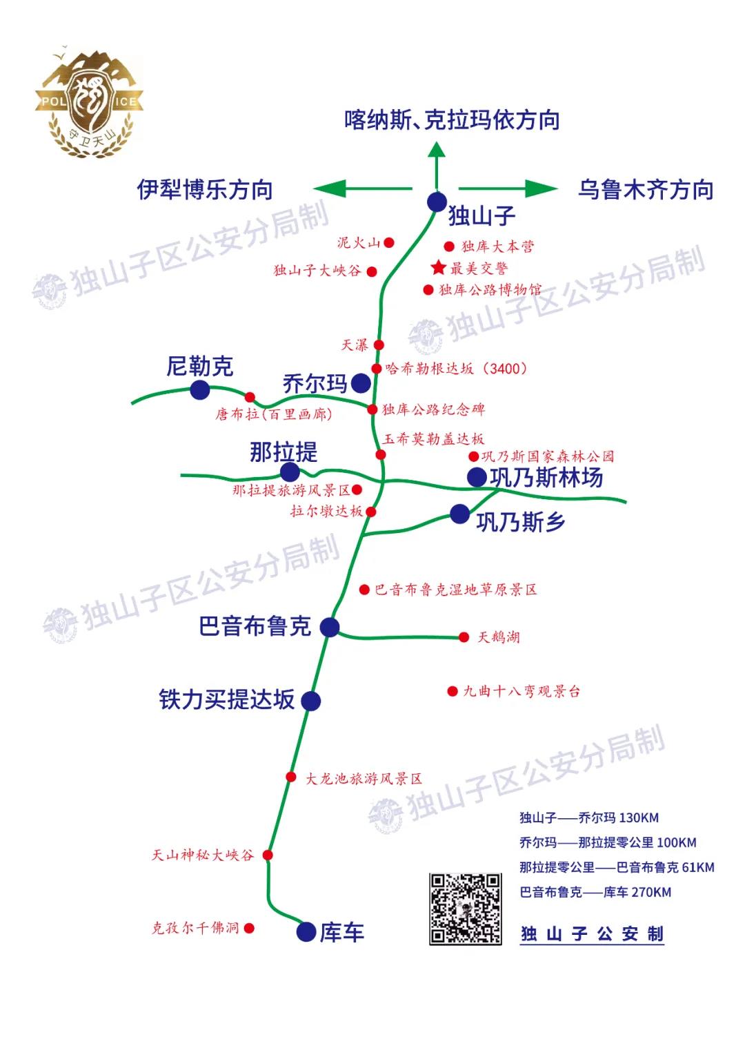 獨(dú)庫(kù)公路路況多變,全段由6個(gè)交警大隊(duì)管轄,為最大程度方便游客出行,克拉瑪依市公安局獨(dú)山子區(qū)分局在前期工作中做足了功夫。