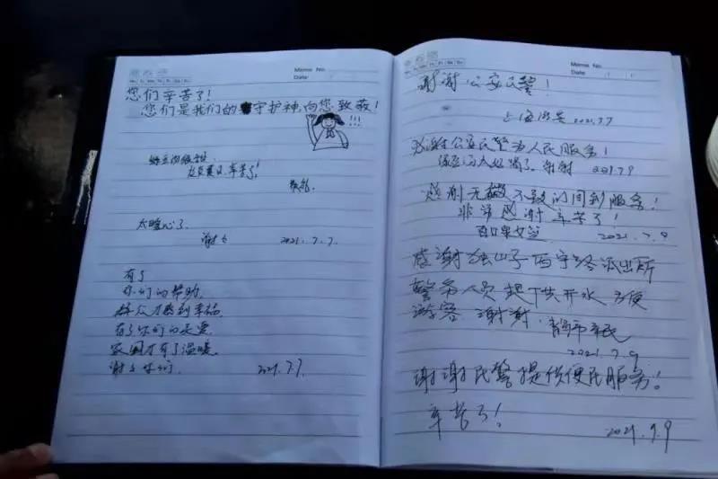 翻開(kāi)便民服務(wù)點(diǎn)的留言本,密密麻麻的幾頁(yè)內(nèi)容,都是游客對(duì)服務(wù)點(diǎn)執(zhí)勤隊(duì)員的感謝。