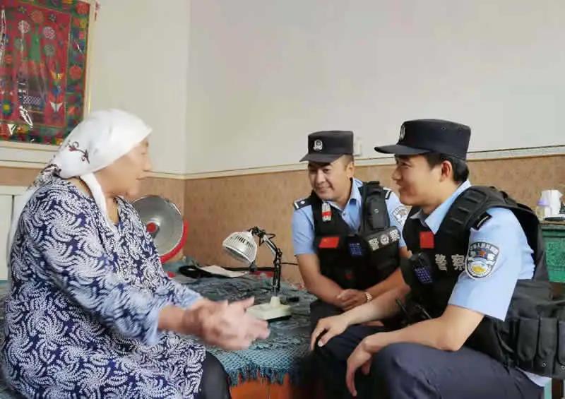 “大叔,最近身體好嗎?家里有什么困難嗎?”清晨,新疆出入境邊防檢查總站哈密邊境管理支隊(duì)紅柳峽派出所民警張才建和同事木拉提拜克·胡安拜克又一次來到轄區(qū)大紅柳峽村村民熬干拜·木斯塔琶大叔家。