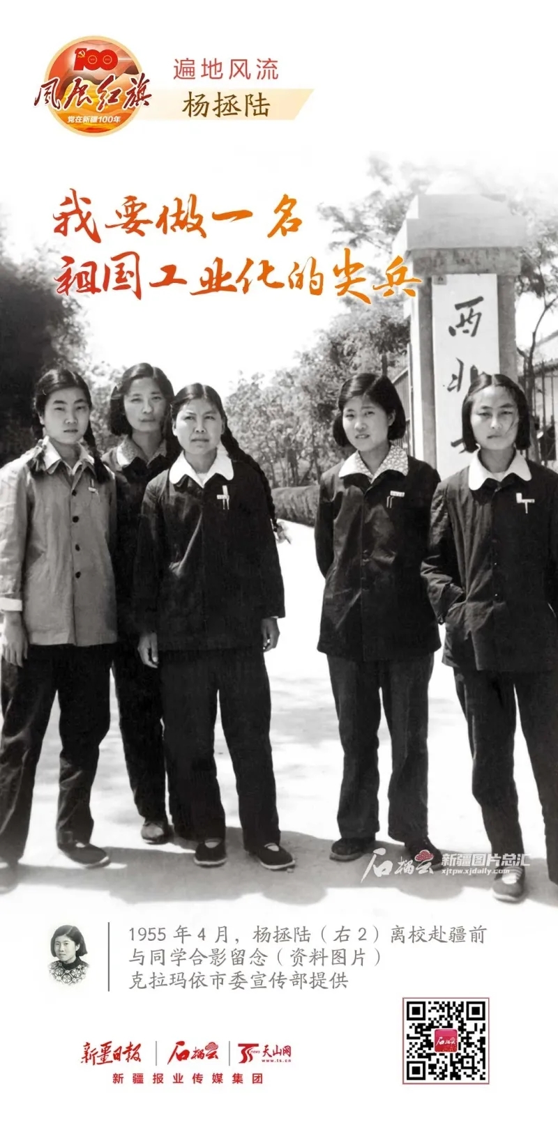 1955年7月的一天,一輛卡車從西安駛出,一路向西。卡車上,楊拯陸和李溪濱等十幾名畢業生一路唱著歌兒,向著新疆奔去……