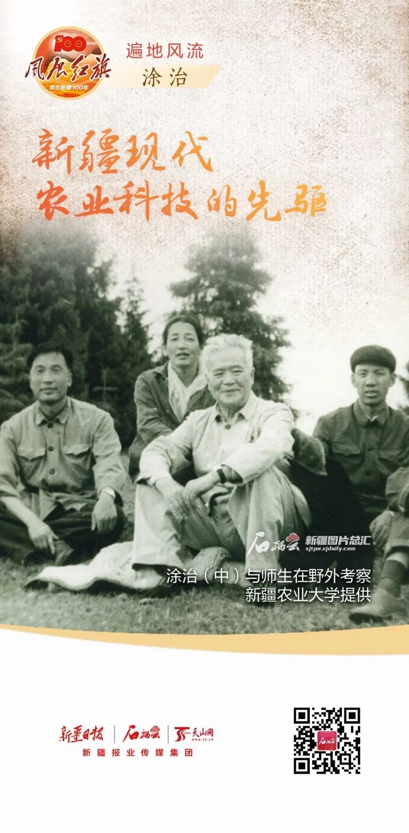 【人物檔案】涂治,新疆現(xiàn)代農(nóng)業(yè)科學(xué)技術(shù)的開創(chuàng)者之一。1939年,涂治來到新疆,擔(dān)任新疆學(xué)院(今新疆大學(xué))領(lǐng)導(dǎo)職務(wù);新中國成立后,涂治擔(dān)任新疆農(nóng)林廳廳長、八一農(nóng)學(xué)院(今新疆農(nóng)業(yè)大學(xué))院長等;1950年,涂治光榮地加入了中國共產(chǎn)黨;1955年,涂治被授予中國科學(xué)院生物地理學(xué)部委員;1976年3月,涂治因病逝世,享年75歲。