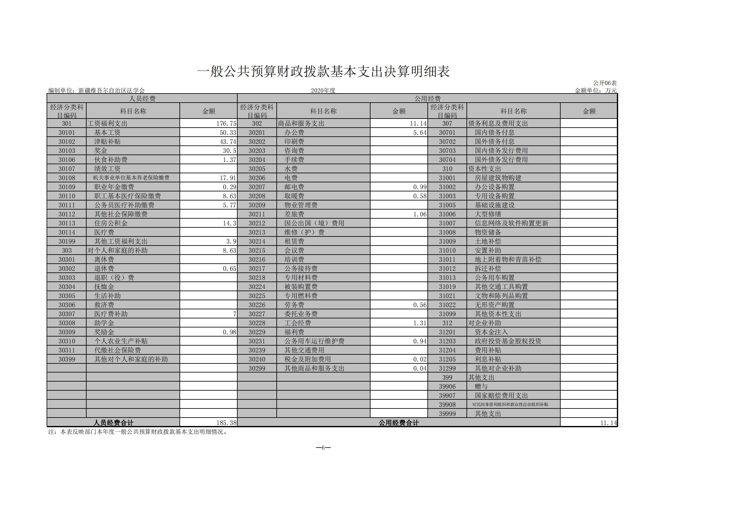 新疆維吾爾自治區(qū)法學(xué)會(huì)2020年度部門(mén)決算公開(kāi)說(shuō)明