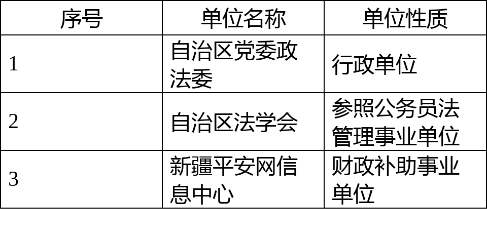 納入自治區黨委政法委2020年度部門決算編制范圍的單位名單見下表: