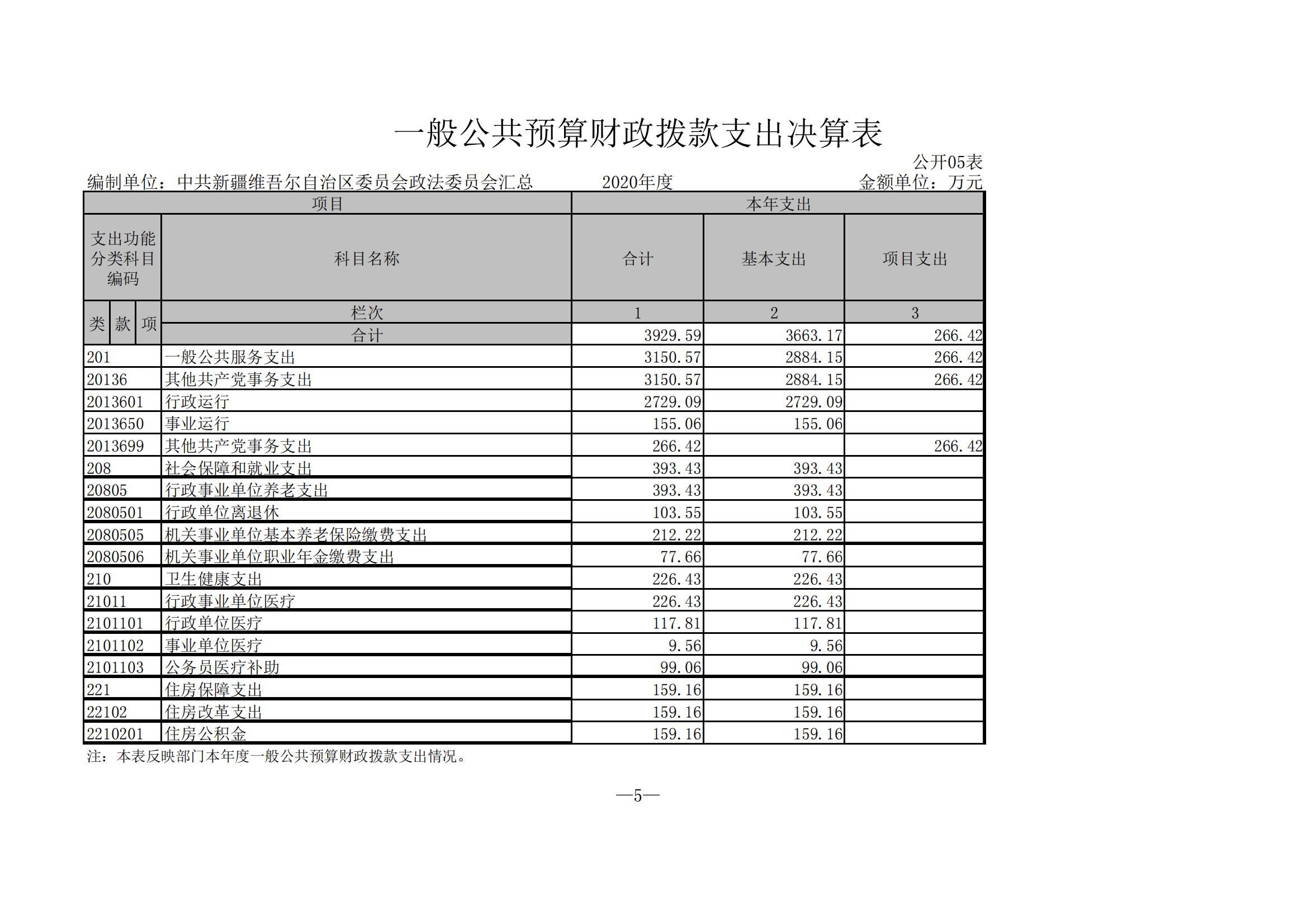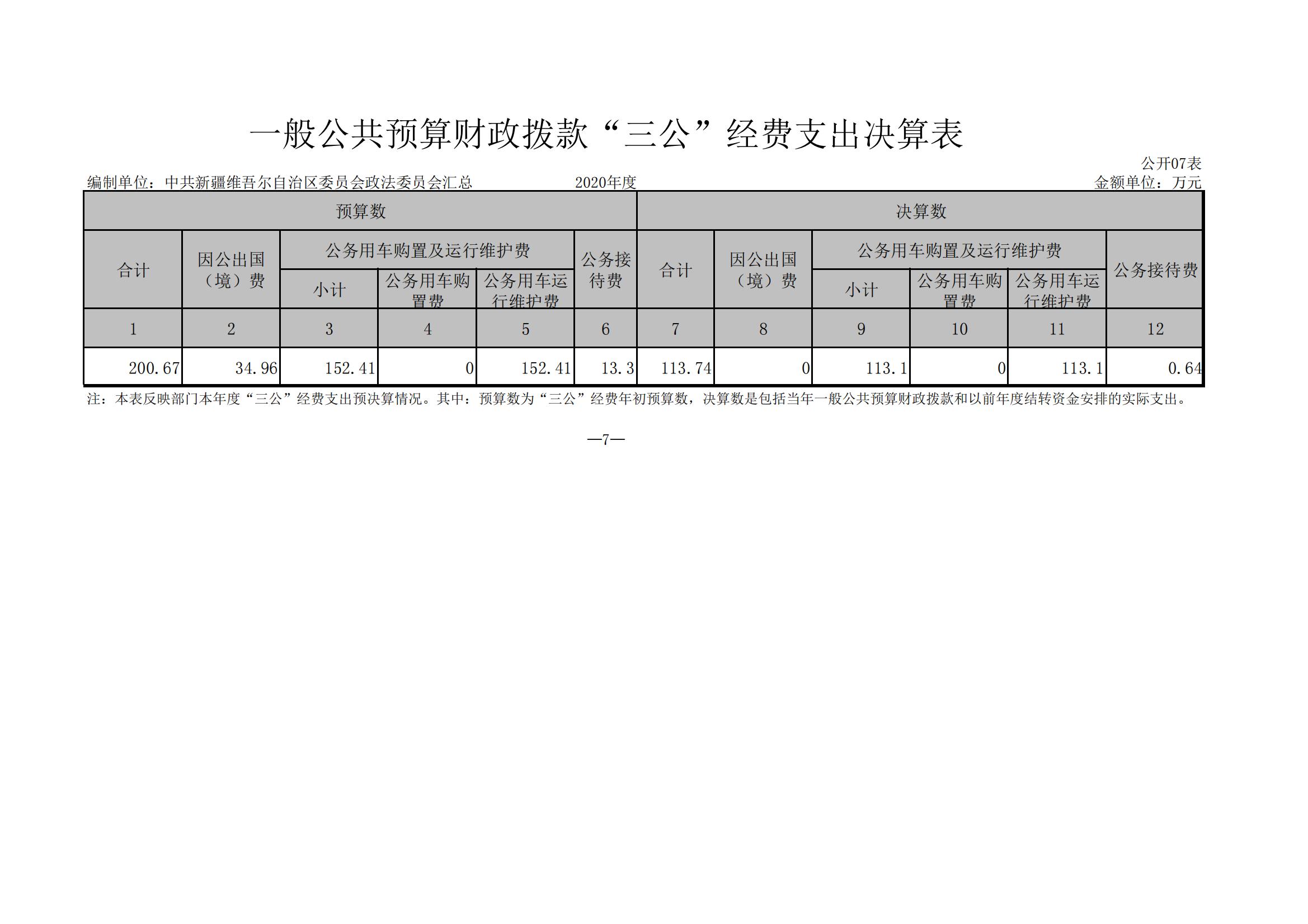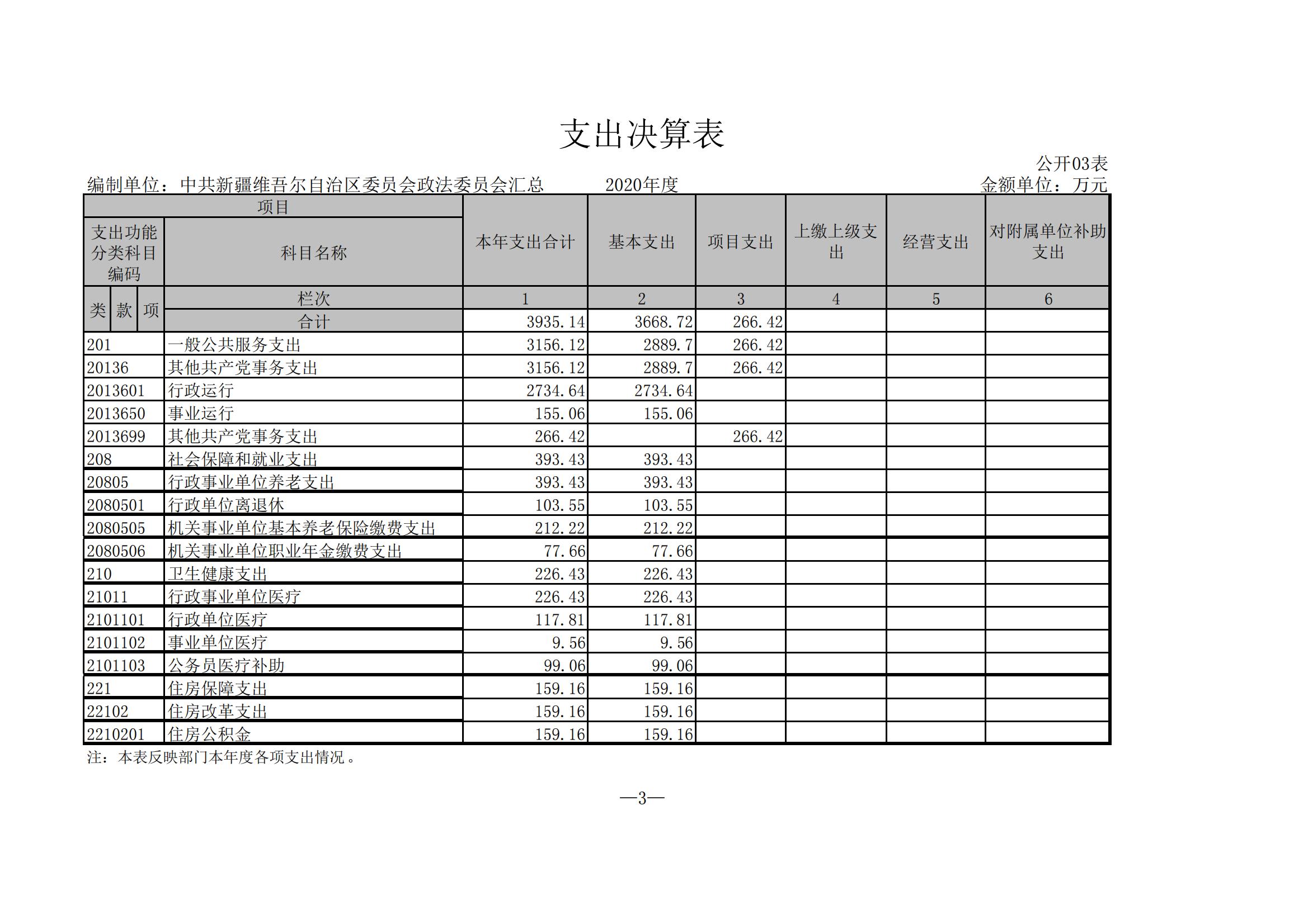 中共新疆維吾爾自治區委員會政法委員會2020年度部門決算公開說明(匯總)