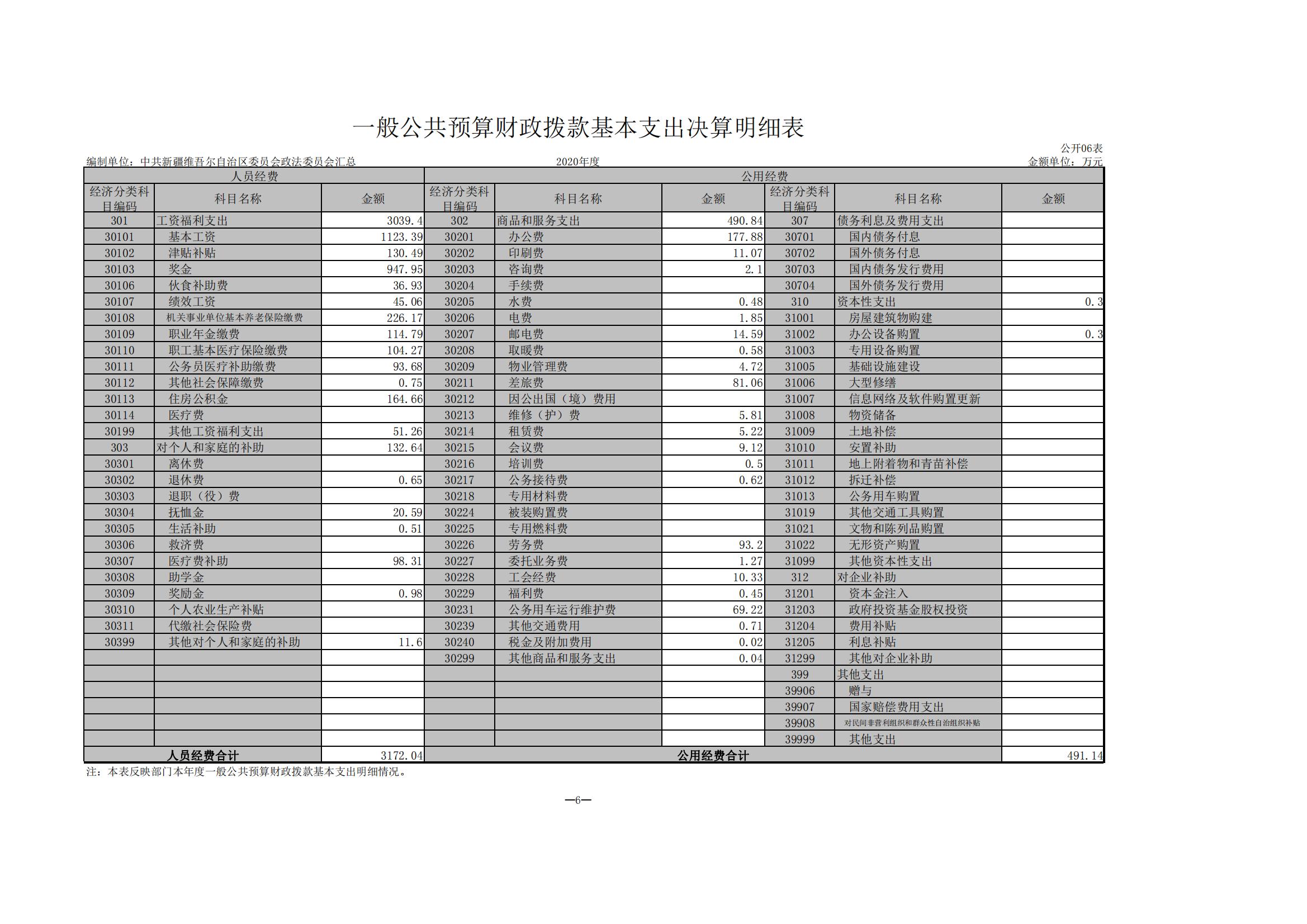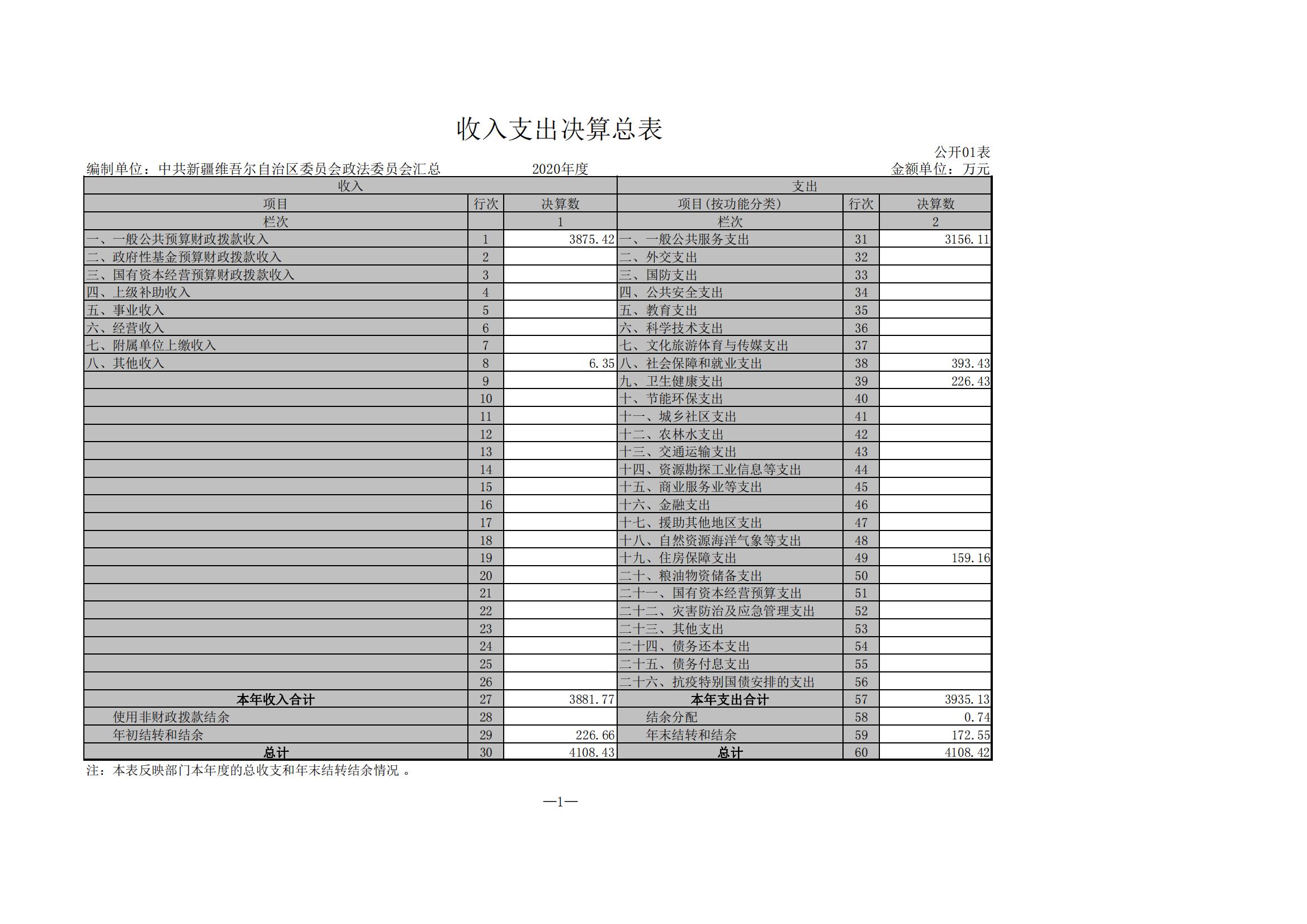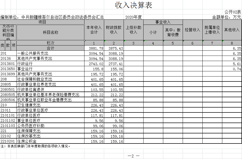 中共新疆維吾爾自治區委員會政法委員會2020年度部門決算公開說明(匯總)
