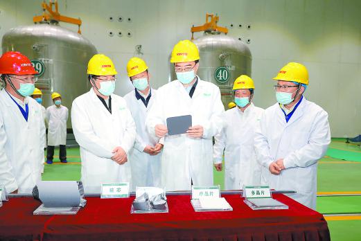 8月23日,自治區黨委書記陳全國在烏魯木齊市調研。這是陳全國來到位于烏魯木齊甘泉堡經濟技術開發區(工業區)的新特能源股份有限公司,了解企業生產經營、技術研發、帶動就業等情況。 石榴云/新疆日報記者 崔志堅 攝