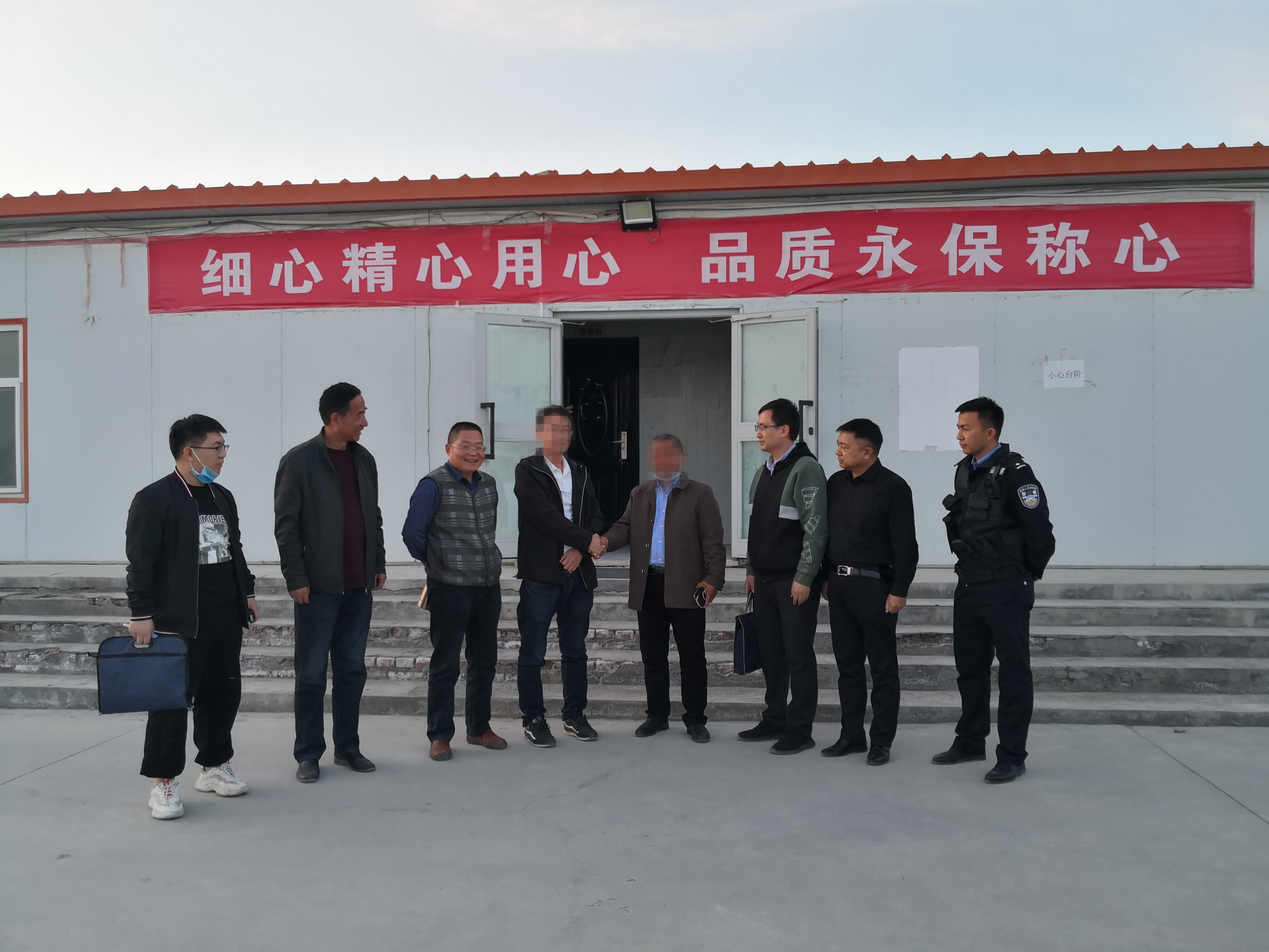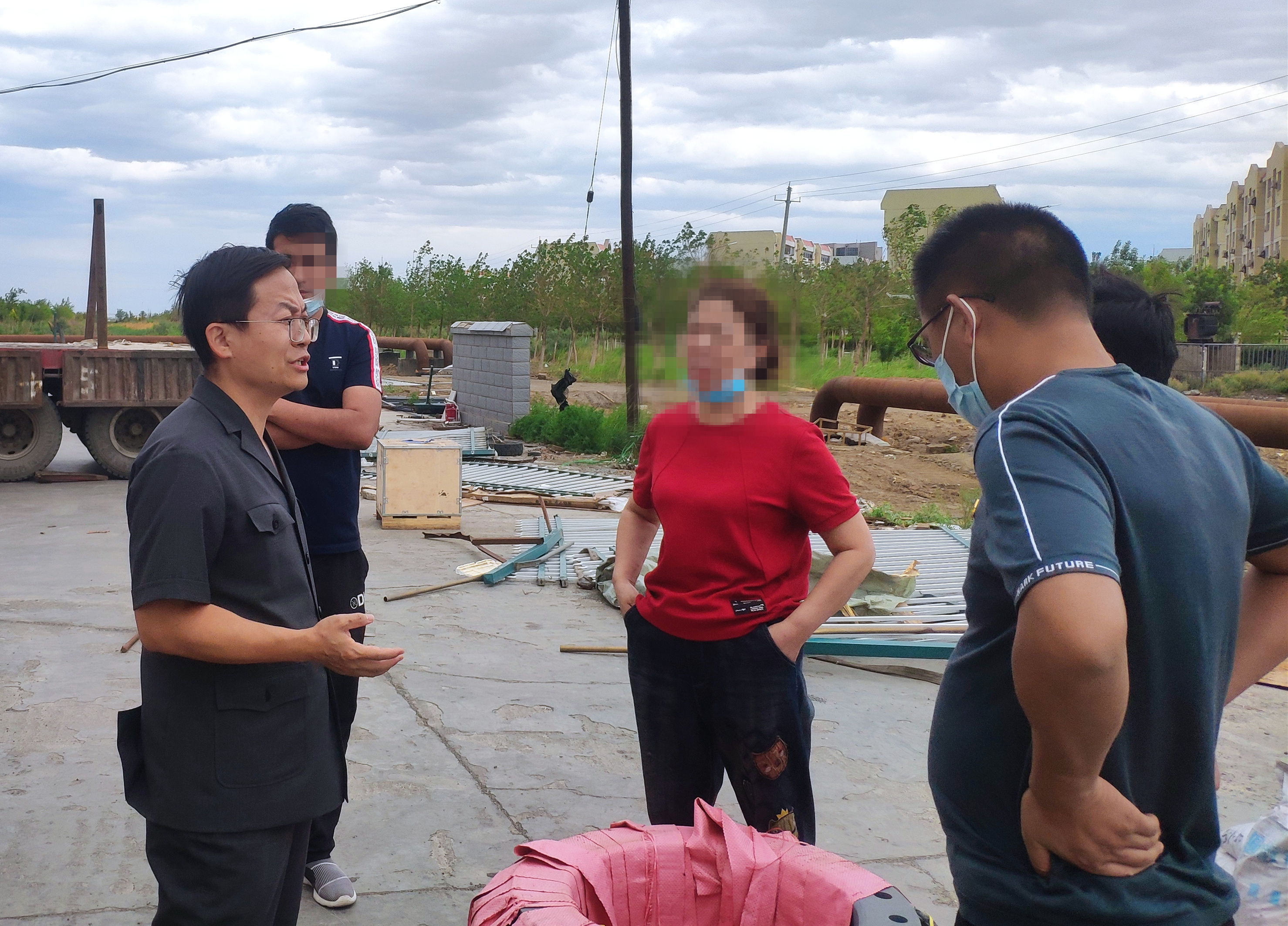 王某租賃的新場地是一片離市區30余公里的荒地,緊沿高速,泥土飛揚。陳疆偉一行剛下車,渾身就掛滿了土,一群人灰頭土臉的,如果不是胸前的法徽,根本看不出下來的是一群法官。王某想安排陳疆偉一行到臨時辦公點坐坐,但大家執意要去現場,掌握真實情況,幫助解決具體困難。一來二去,被執行人王某抵觸情緒慢慢緩和了,也開始聽從執行法官的意見與某房產公司商討和解方案。最終雙方達成一致意見,定于2021年6月22日進行房屋交接,申請執行人也作出讓步,同意物流公司在不影響正常經營的情況下履行租金、違約金的償還義務,于是這才有了開頭那通喜悅的電話。