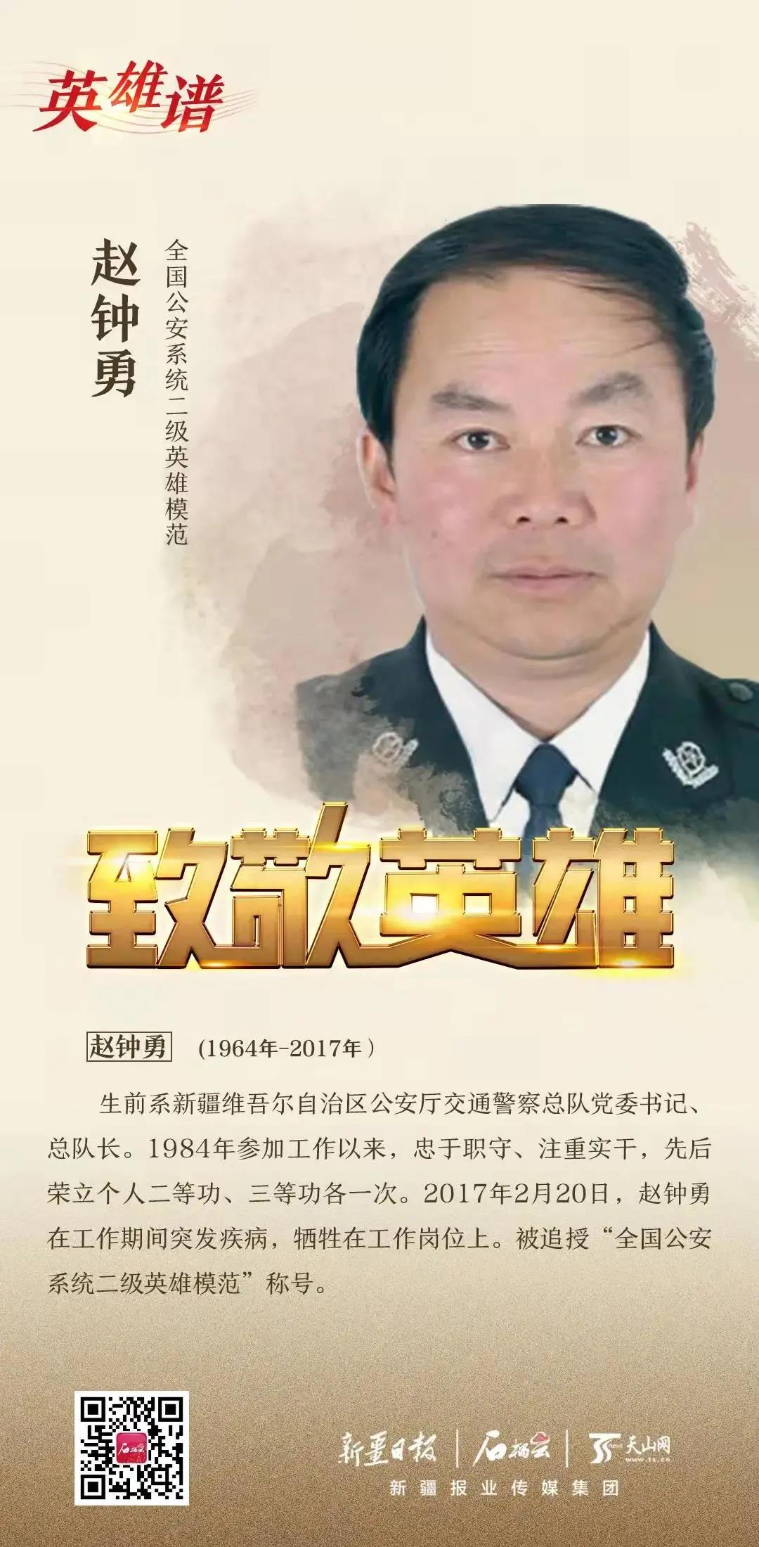 趙鐘勇生前系自治區(qū)公安廳交通警察總隊(duì)黨委書(shū)記、總隊(duì)長(zhǎng),2017年2月20日,他在工作期間突發(fā)疾病,犧牲在工作崗位上。