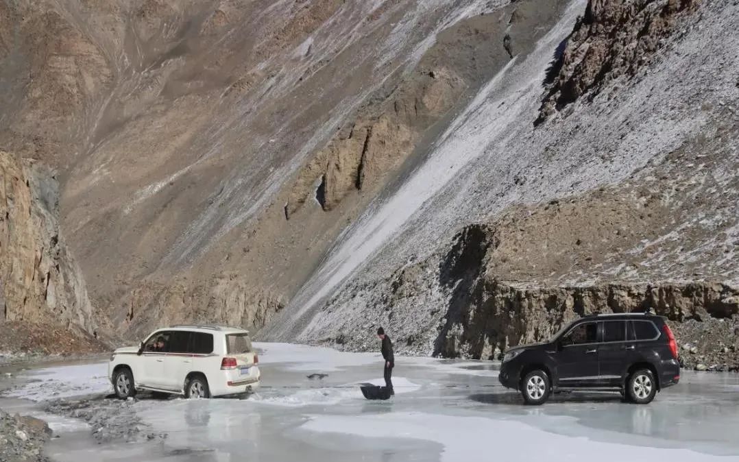 12月5日17時許,新疆出入境邊防檢查總站和田邊境管理支隊大紅柳灘邊境警務站接到群眾報警求助,稱其3名同事在昆侖山中探礦返回時,車輛掉進冰河的窟窿中。其駕車前往救援途中,也掉進冰河無法自行脫困,急需救援。被困地點位于新藏公路570公里處北側(cè)海拔5600米的深山冰河中,情況十分危急。