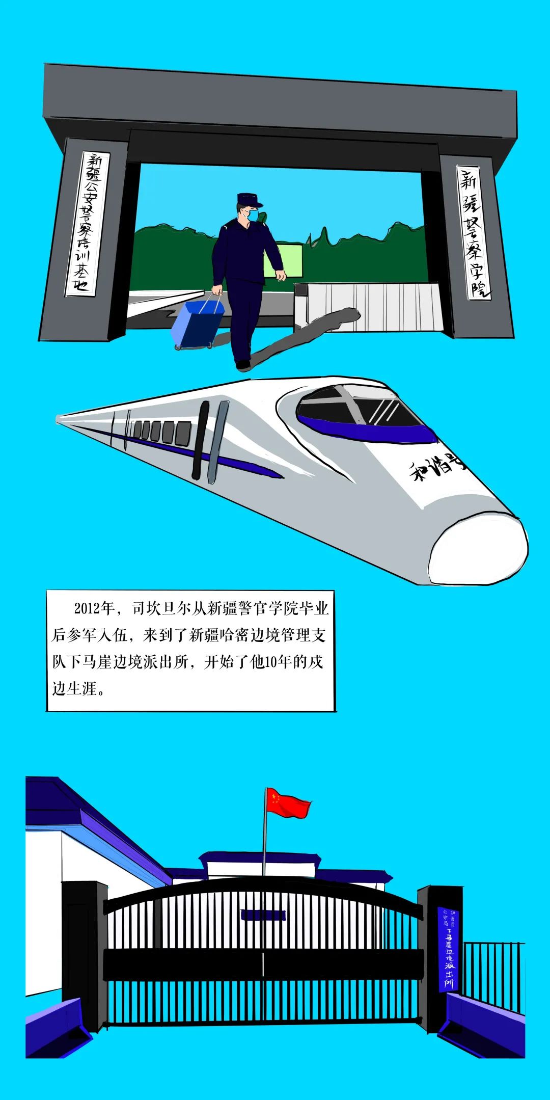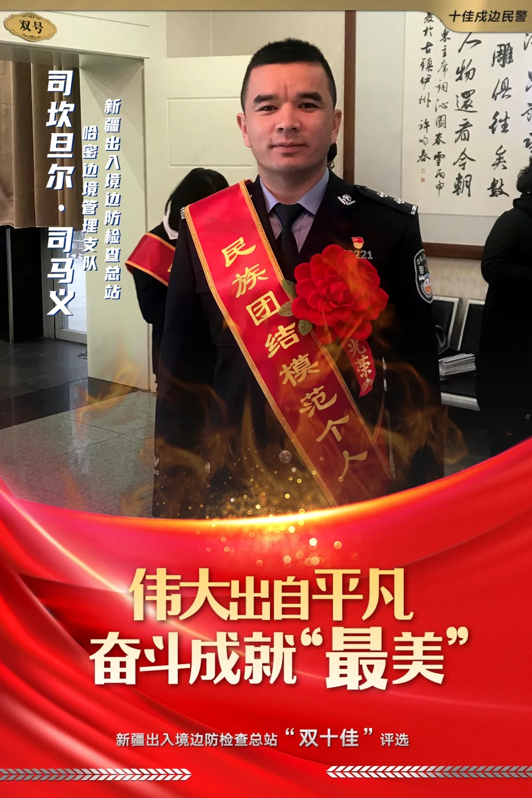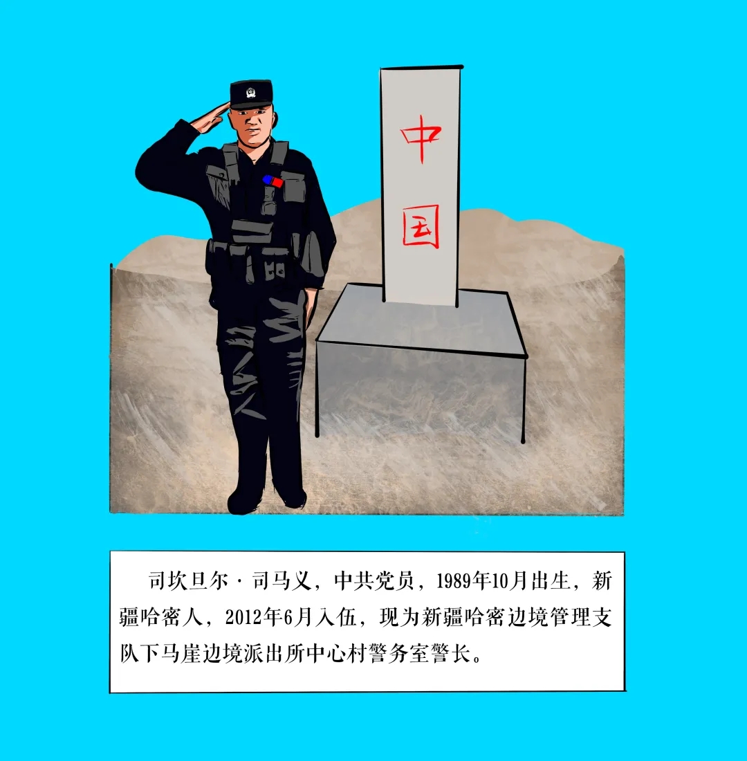 司坎旦爾·司馬義,中共黨員,1989年10月出生,新疆出入境邊防檢查總站哈密邊境管理支隊下馬崖邊境派出所中心村警務室警長。