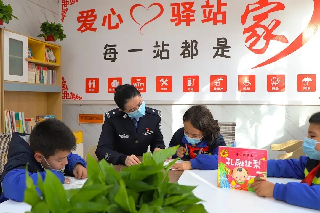 原來,伽師縣公安局在前期走訪中,發(fā)現(xiàn)很多父母下班晚,孩子放學(xué)后要么獨自在院子里玩耍,要么在家看電視。為了讓孩子們生活上有關(guān)愛、學(xué)習(xí)上有幫助、行為上有約束、安全上有保障,伽師縣公安局在首批“特色服務(wù)站”示范點寶源商廈便民警務(wù)站打造了“愛心驛站”,為孩子們提供學(xué)習(xí)讀書的地方,由民警專人負責(zé),給孩子們輔導(dǎo)功課、答疑解惑。