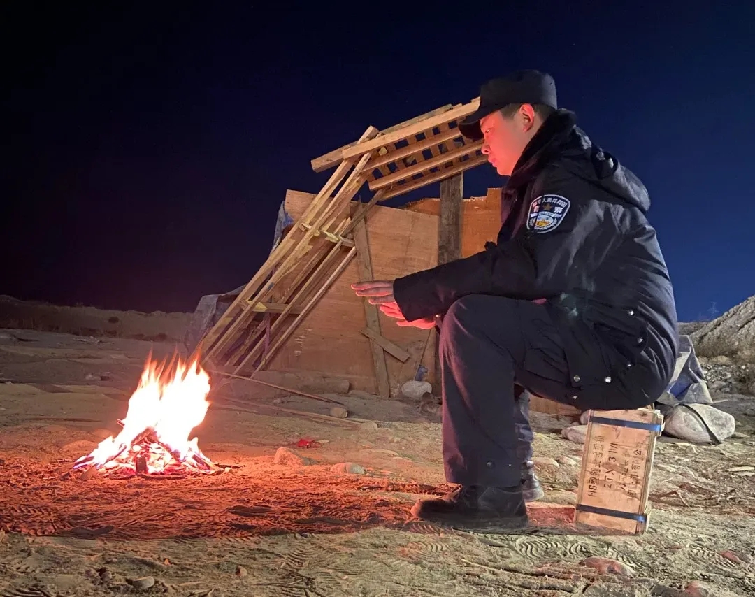 這是2021年讓我感觸最深的一張工作照。年末的邊陲明珠霍爾果斯透漏著陣陣寒意,我和戰友抽調至邊境地區執行巡線任務。在荒涼的邊境線上,我們搭下了這個臨時哨點。每當寒夜來臨的時候,戰友們生起火苗,堅守在自己的陣地,照亮祖國的邊境線。