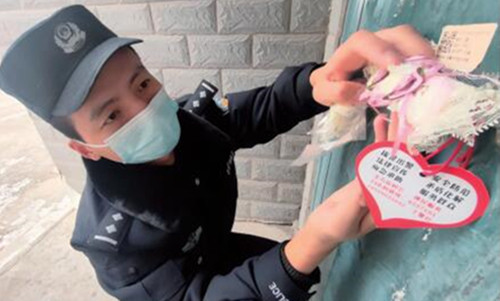 一個暖心的小舉動,背后還藏著另一個“小驚喜”。為了拉近與居民的距離,王流濤在轄區居民的門把手上都掛了一個愛心形狀的卡片,一面寫著“天很冷,家很暖”,一面印著他的聯系方式和二維碼。“保證居民在24小時內都能聯系到我們,冬季燃氣水電安全、家里的突發情況等都可以隨時給我們打電話。”王流濤說。