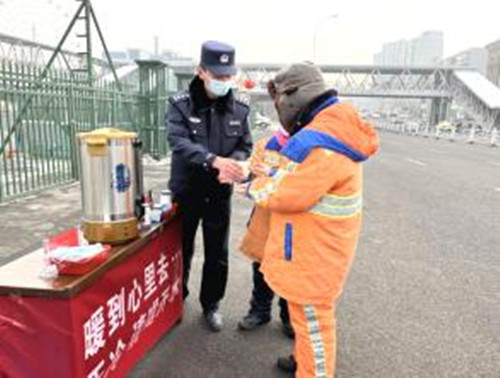 不僅如此,王流濤還在轄區設置了一個飲水點,為環衛工人免費提供開水,同時還為群眾免費提供口罩,開展疫情防控、反詐宣傳等工作。