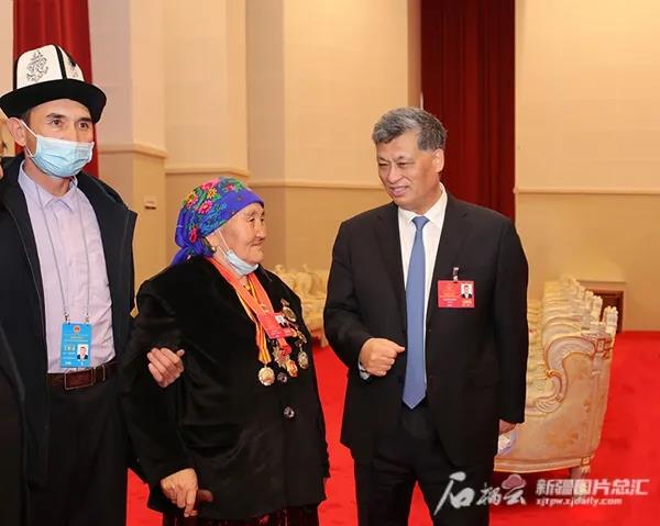 新疆平安網訊 馬興瑞、艾爾肯·吐尼亞孜、肖開提·依明、努爾蘭·阿不都滿金等自治區領導1月23日自治區人代會開幕會后,看望了“人民楷模”國家榮譽稱號獲得者、自治區人大代表布茹瑪汗·毛勒朵,祝愿老人健康長壽、生活幸福,把守邊護邊的愛國情懷一代一代傳下去。
