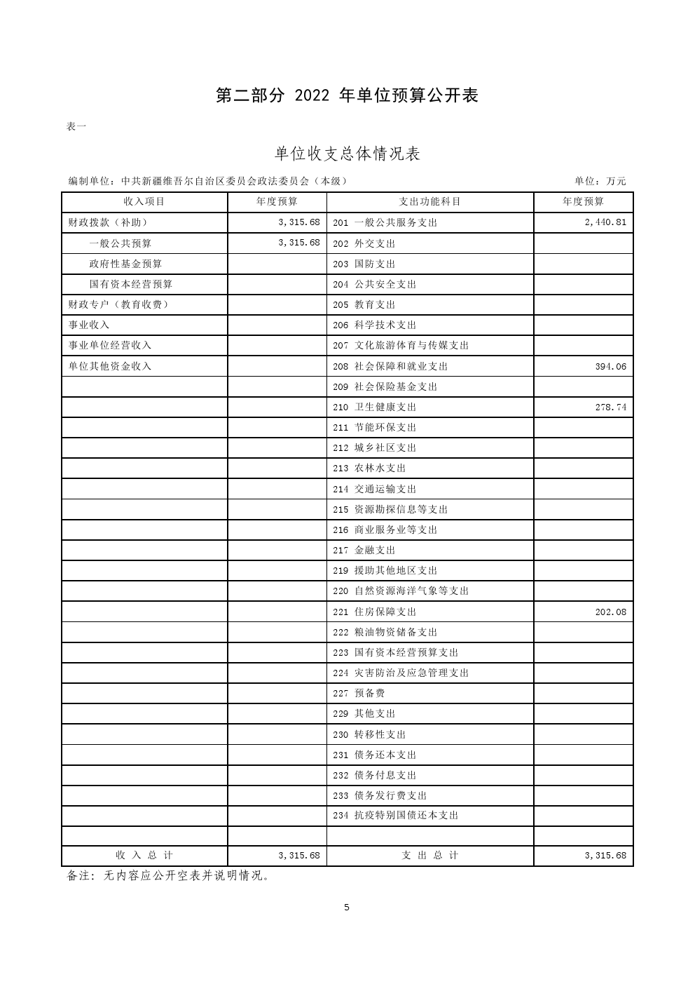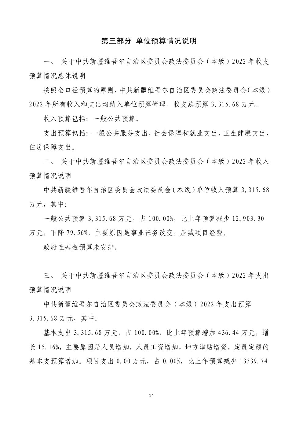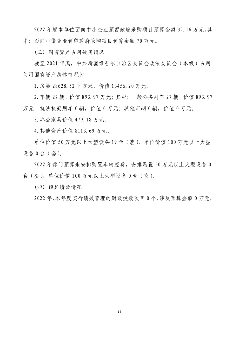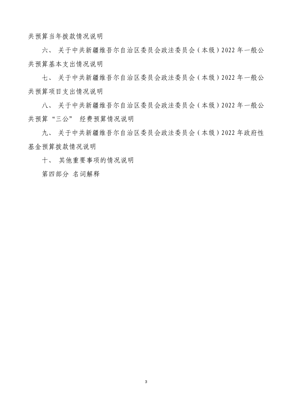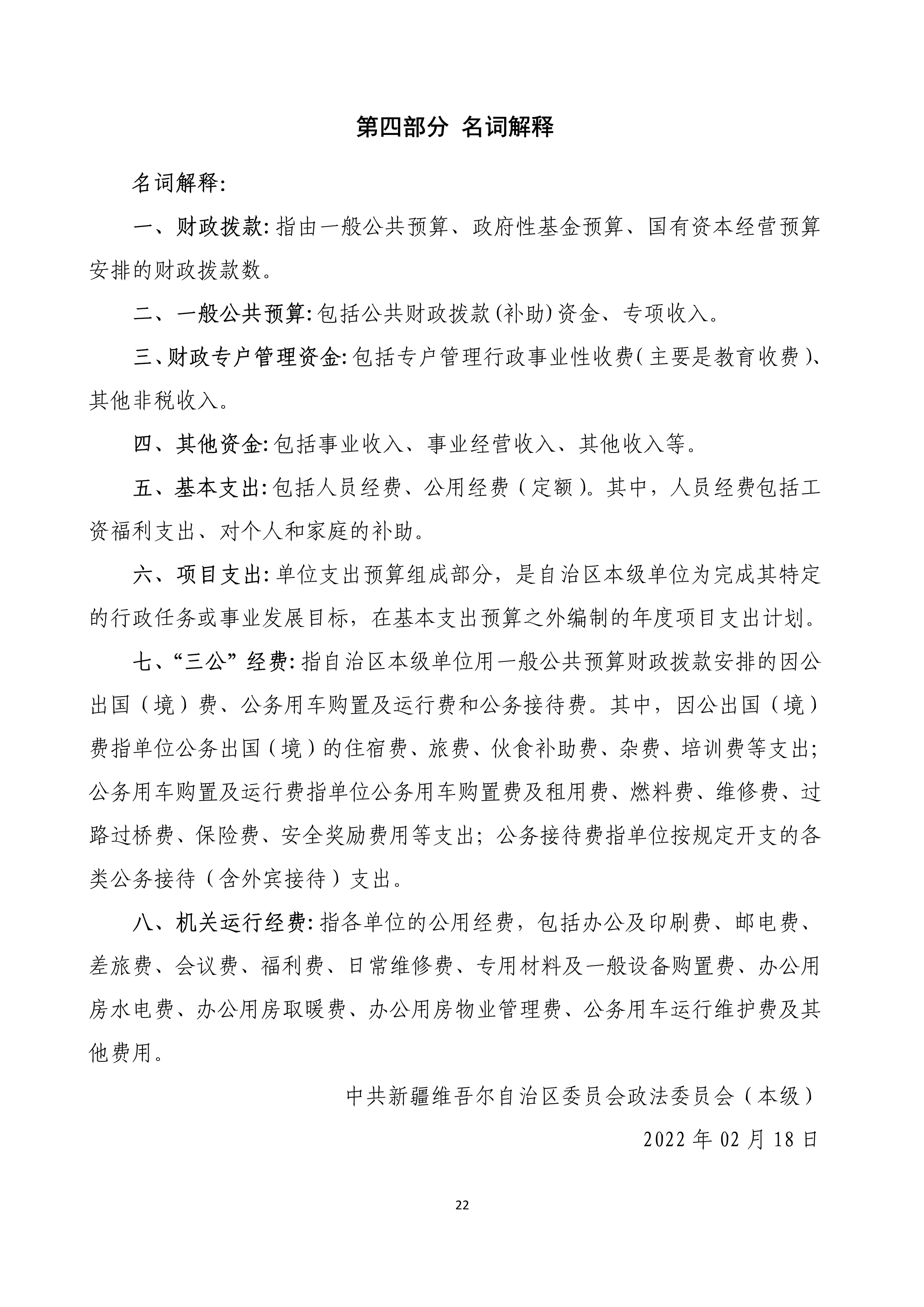 中共新疆維吾爾自治區委員會政法委員會(本級)2022 年單位預算公開
