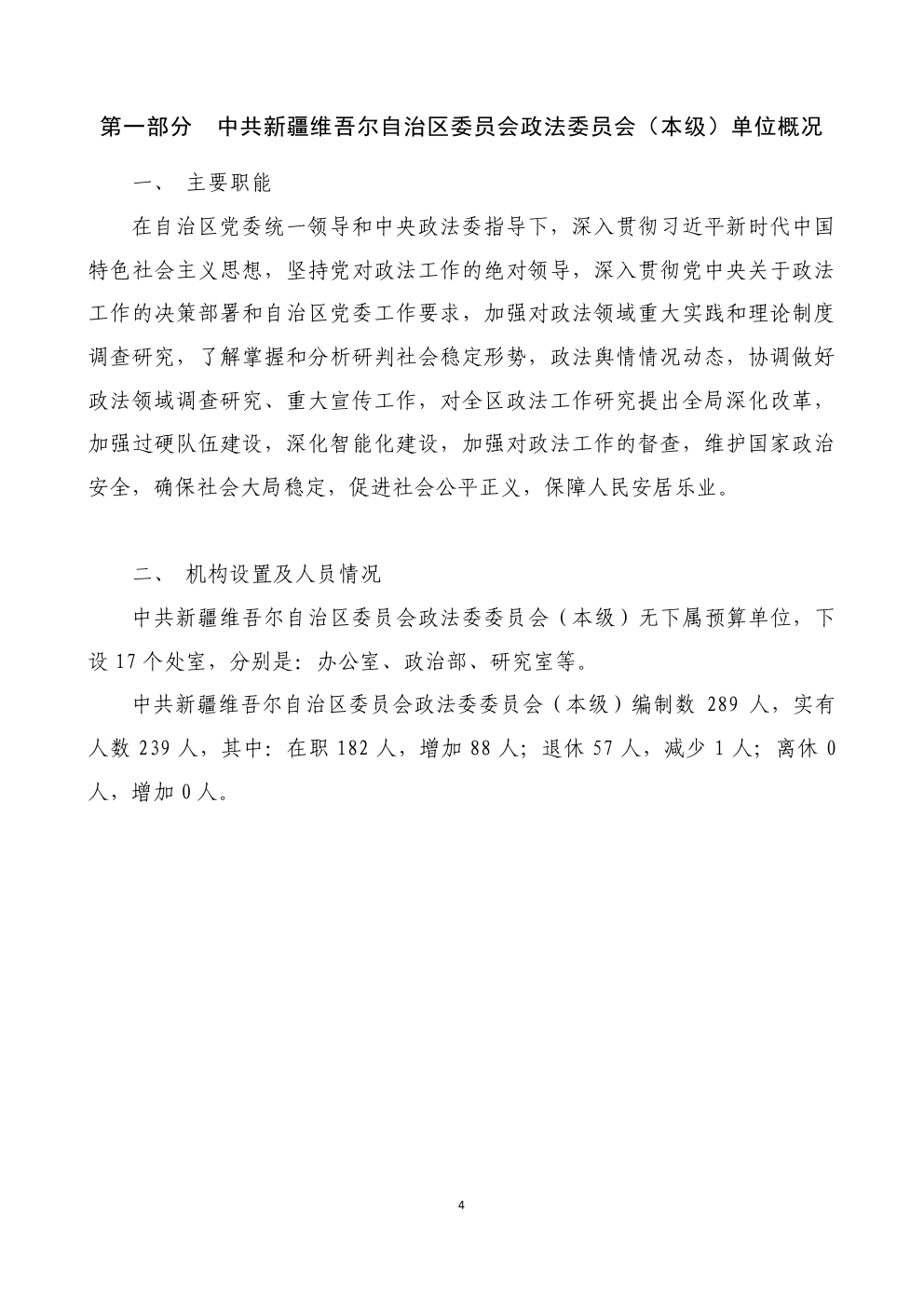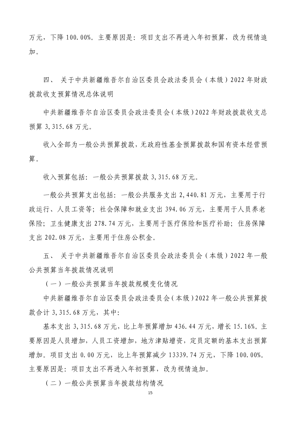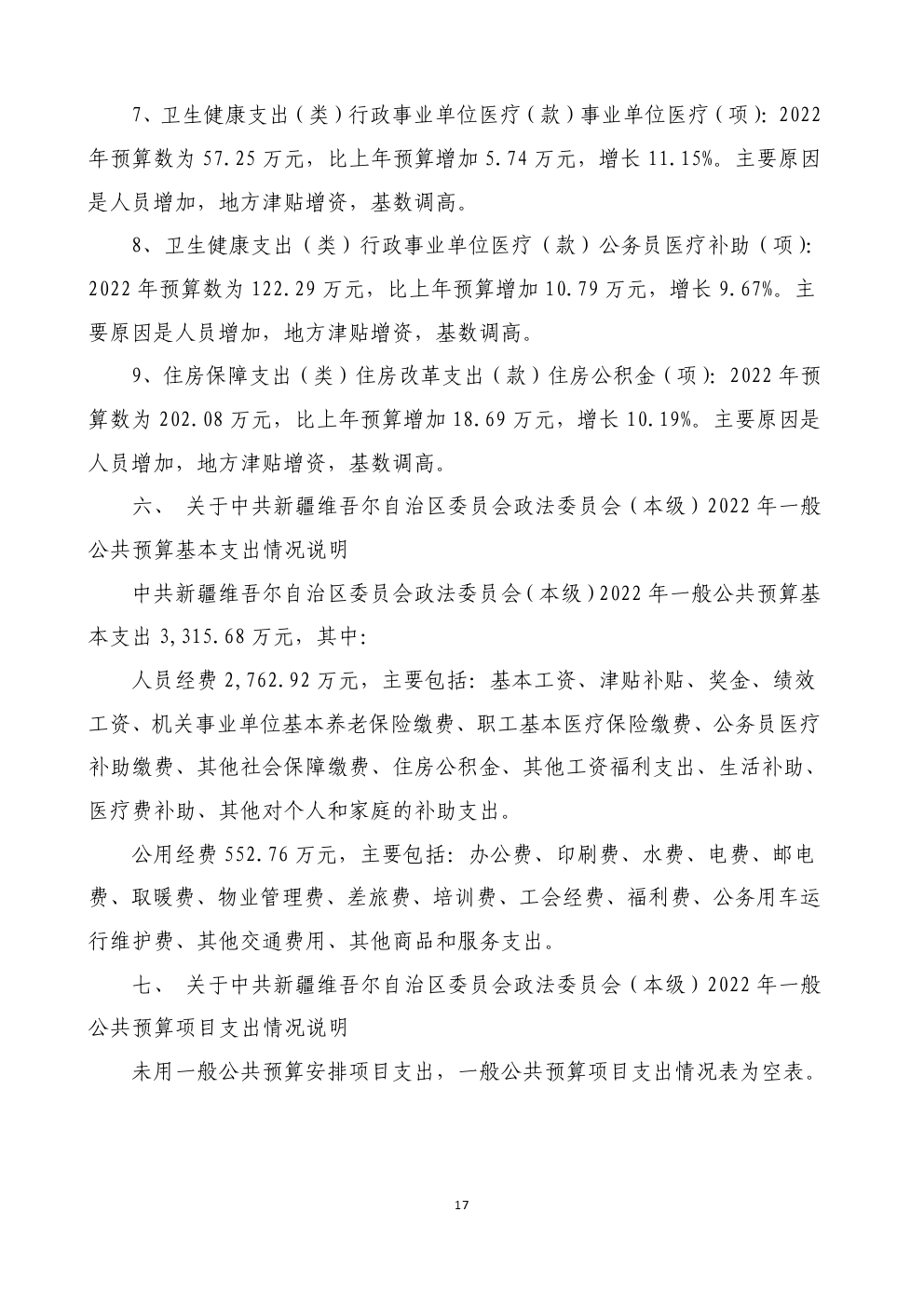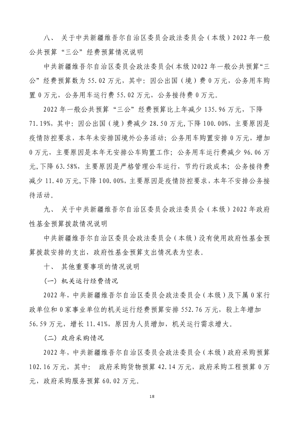 中共新疆維吾爾自治區委員會政法委員會(本級)2022 年單位預算公開