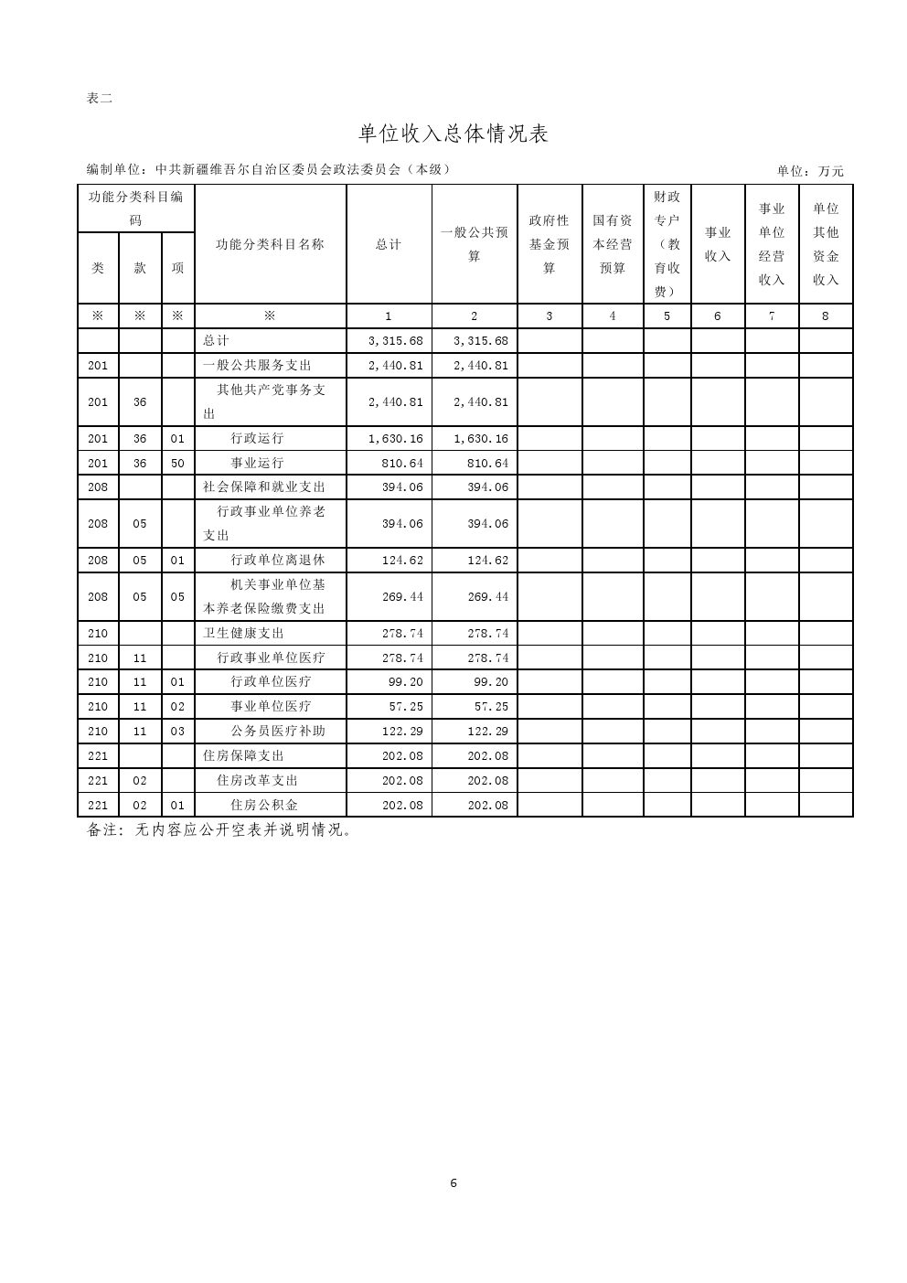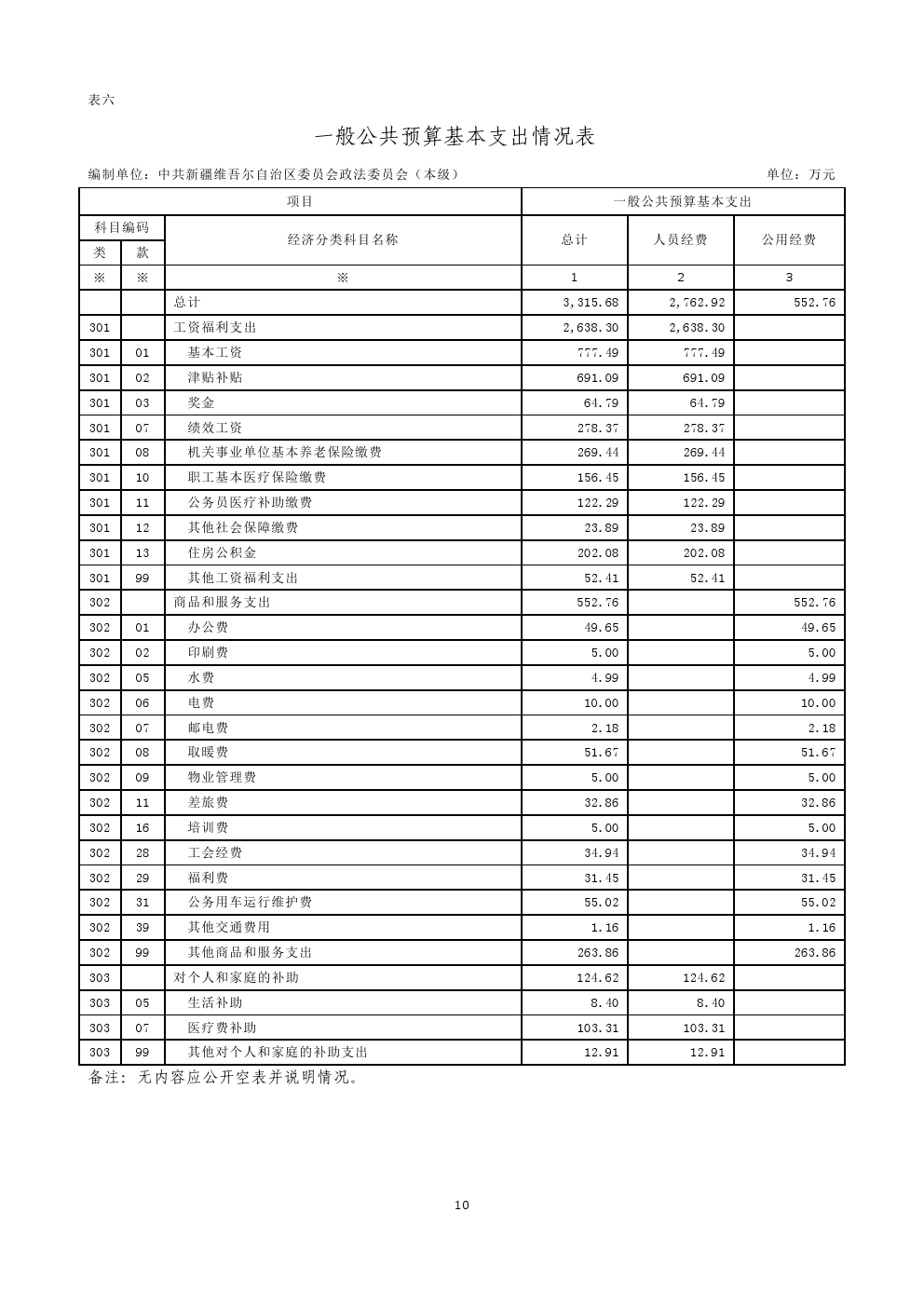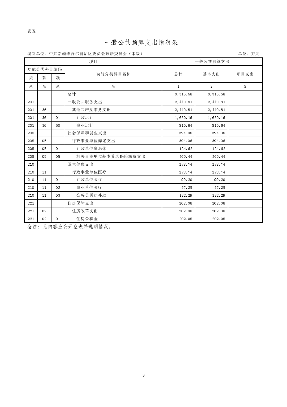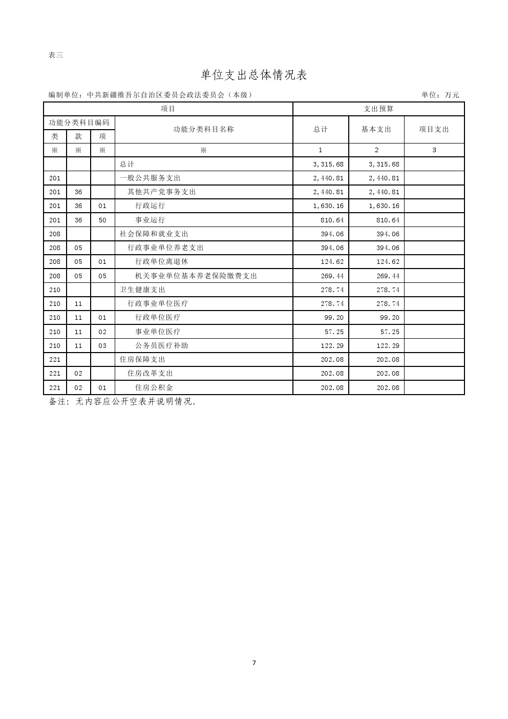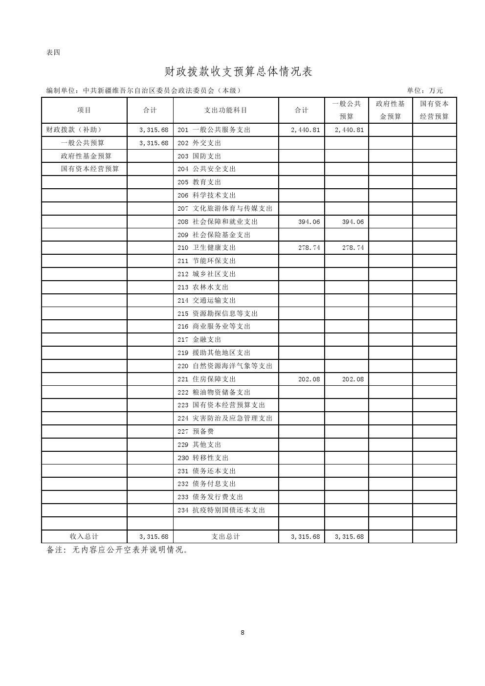 中共新疆維吾爾自治區委員會政法委員會(本級)2022 年單位預算公開