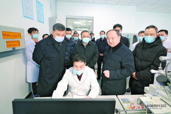 2月23日,自治區(qū)黨委書(shū)記馬興瑞在新疆大學(xué)和新疆天山職業(yè)技術(shù)大學(xué)調(diào)研。這是馬興瑞在新疆大學(xué)省部共建碳基能源資源化學(xué)與利用國(guó)家重點(diǎn)實(shí)驗(yàn)室,了解學(xué)科建設(shè)、科學(xué)研究和成果轉(zhuǎn)化等情況。 石榴云/新疆日?qǐng)?bào)記者崔志堅(jiān)攝