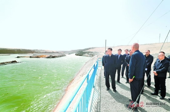 馬興瑞強(qiáng)調(diào),水是新疆經(jīng)濟(jì)社會(huì)發(fā)展的命脈。南疆地區(qū)水資源短缺且分布不均,做好水利工作對(duì)于保障水安全、推動(dòng)經(jīng)濟(jì)社會(huì)高質(zhì)量發(fā)展、保障和改善民生、保持生態(tài)穩(wěn)定性等具有十分重大的意義。要完整準(zhǔn)確全面貫徹新發(fā)展理念,堅(jiān)持“節(jié)水優(yōu)先、空間均衡、系統(tǒng)治理、兩手發(fā)力”的治水方針,樹立系統(tǒng)觀念,堅(jiān)持流域區(qū)域科學(xué)統(tǒng)籌、開源節(jié)流并重、短期長(zhǎng)期兼顧,推動(dòng)流域水安全有效保障、水資源高效利用、水生態(tài)明顯改善;要統(tǒng)籌生產(chǎn)、生活、生態(tài)用水,加強(qiáng)和優(yōu)化水資源供給,提升水資源優(yōu)化配置能力,堅(jiān)持節(jié)水優(yōu)先,強(qiáng)化水資源剛性約束,強(qiáng)化重大水利工程項(xiàng)目建設(shè),促進(jìn)水資源節(jié)約集約高效利用;要堅(jiān)持山水林田湖草沙系統(tǒng)治理,保障河湖生態(tài)流量,加快河湖生態(tài)保護(hù)修復(fù)和綜合治理,推進(jìn)防沙治沙,發(fā)展生態(tài)產(chǎn)業(yè),實(shí)現(xiàn)生態(tài)效益和經(jīng)濟(jì)社會(huì)效益相統(tǒng)一;要圍繞保障糧食安全,強(qiáng)化農(nóng)田水利建設(shè),夯實(shí)農(nóng)田灌溉基礎(chǔ),穩(wěn)步提升糧食和重要農(nóng)產(chǎn)品供給能力,大力推進(jìn)工業(yè)、城鎮(zhèn)等領(lǐng)域合理用水、節(jié)約用水;要壓緊壓實(shí)各級(jí)河湖長(zhǎng)責(zé)任,加強(qiáng)兵地協(xié)調(diào)聯(lián)動(dòng)、部門單位協(xié)同配合,加強(qiáng)水利干部人才、科技基礎(chǔ)等建設(shè),不斷提高水利支撐區(qū)域經(jīng)濟(jì)社會(huì)高質(zhì)量發(fā)展的水平。