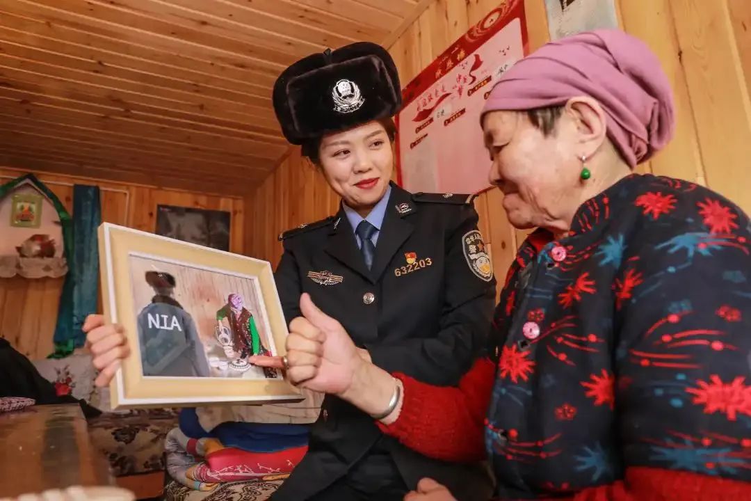 白韻楠了解到,轄區(qū)有很多留守景區(qū)的群眾多年來幾乎沒有拍過一張像樣的照片,于是利用走訪的時機,為他們繪制“定制畫像”,并打印出來送給群眾。