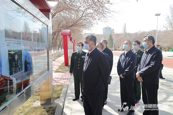 在主席故事園,馬興瑞、艾爾肯·吐尼亞孜等看圖文介紹、聽詳細講解,與各族官兵一同深入學(xué)習(xí)習(xí)近平新時代中國特色社會主義思想。馬興瑞勉勵各族官兵要深刻感悟“兩個確立”的決定性意義,增強“四個意識”、堅定“四個自信”、做到“兩個維護”,堅決維護黨對軍隊絕對領(lǐng)導(dǎo)的根本原則和制度,不斷打牢官兵聽黨指揮、履行使命的思想政治根基,聚焦新疆社會穩(wěn)定和長治久安總目標(biāo),全面提升履行使命任務(wù)能力,為維護國家統(tǒng)一、推動新疆安全穩(wěn)定和建設(shè)發(fā)展作出新的更大貢獻。馬興瑞強調(diào),各級黨委和政府要大力支持國防和軍隊建設(shè),進一步鞏固軍政軍民團結(jié),形成全社會關(guān)心國防、支持國防、參與國防的濃厚氛圍。