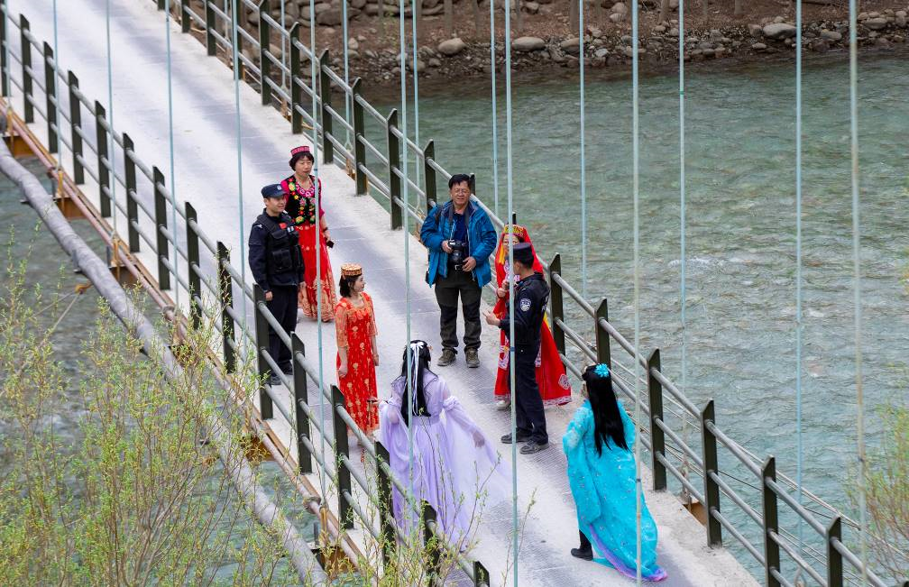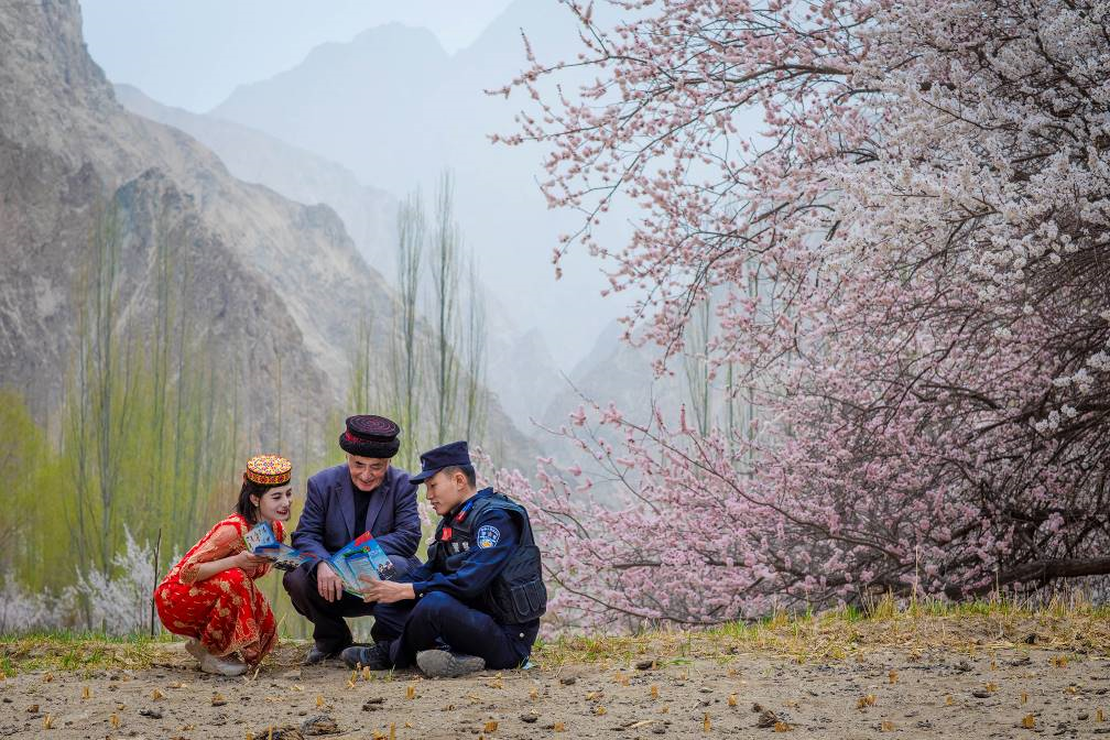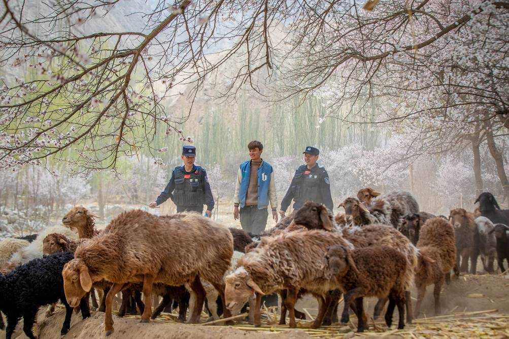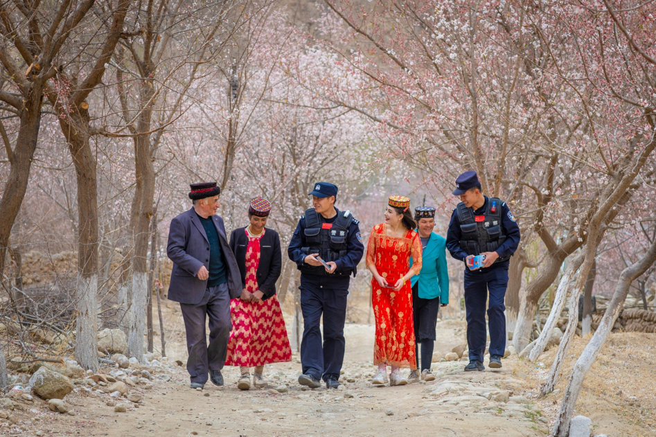 杏花村不止有美景,還有美“警”。如今,在杏花村內(nèi),塔吉克族牧民穿著美麗的服飾,趕著牛羊從杏花樹間走過,大同邊境派出所的民警們也早已融入其中。