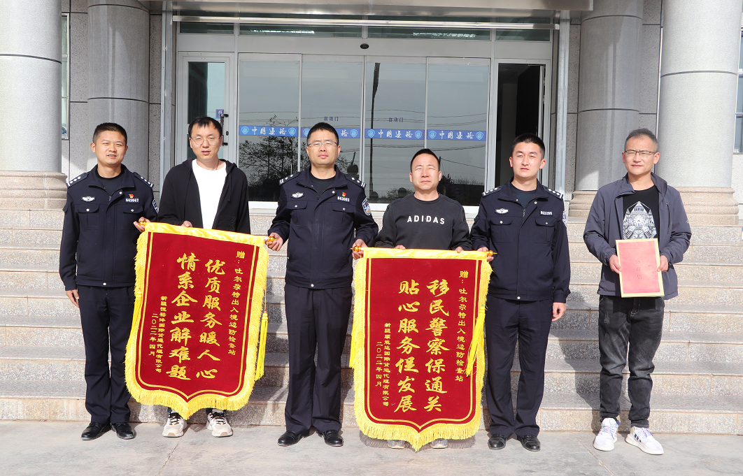 新疆平安網訊 “你們心系口岸通關,我們為邊檢點贊!”4月13日,新疆出入境邊防檢查總站吐爾尕特出入境邊防檢查站收到了吐爾尕特口岸多家涉外企業向該站送來的錦旗和感謝信,表達了對邊檢民警“守國門、保通關”的敬意。