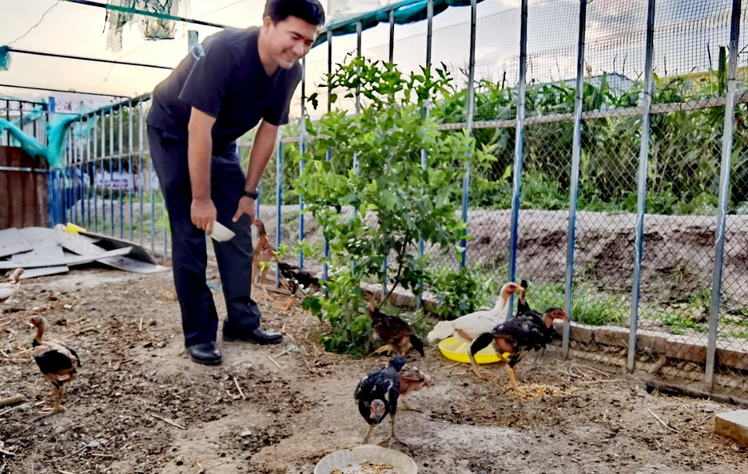 開春時,賽米調動所里全體民輔警修埂、圍欄、硬化、翻地。經過大家的共同努力,派出所院內生活區的爬山虎沿架爬上了屋頂,紫的、紅的、黃的各種鮮花在院內爭相開放。種植區栽種的豇豆、茄子、西紅柿、辣椒等蔬菜長勢喜人,角落的圈舍里還養了斗雞和羊。活動區有籃球場、乒乓球室、臺球場等,民輔警在閑暇時能夠娛樂或鍛煉,極大改善了民輔警的生活條件。
