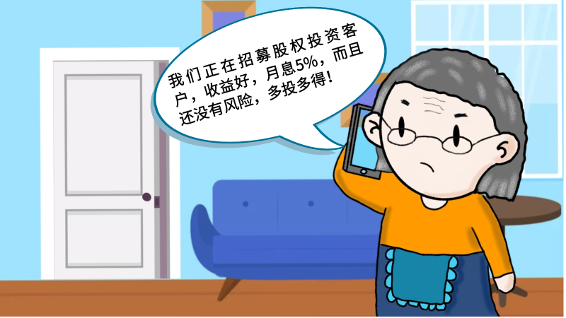 “我們正在招募股權投資客戶,收益好,月息5%,而且還沒有風險!”該名男子說。