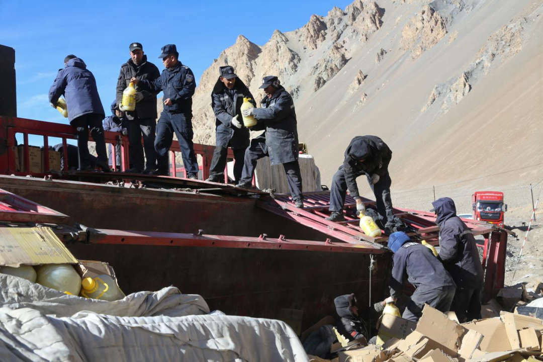2021年9月,一輛從葉城前往西藏運送貨物的大貨車發生側翻,貨物灑落在路邊。庫地邊境檢查站接到求助電話后,迅速派遣就近執勤點護邊員先行趕往事故現場,并派出救援組解救被困在車內的3名群眾,及時協調交警對現場交通進行管控,在確保群眾生命財產安全的基礎上,保障道路正常通行。