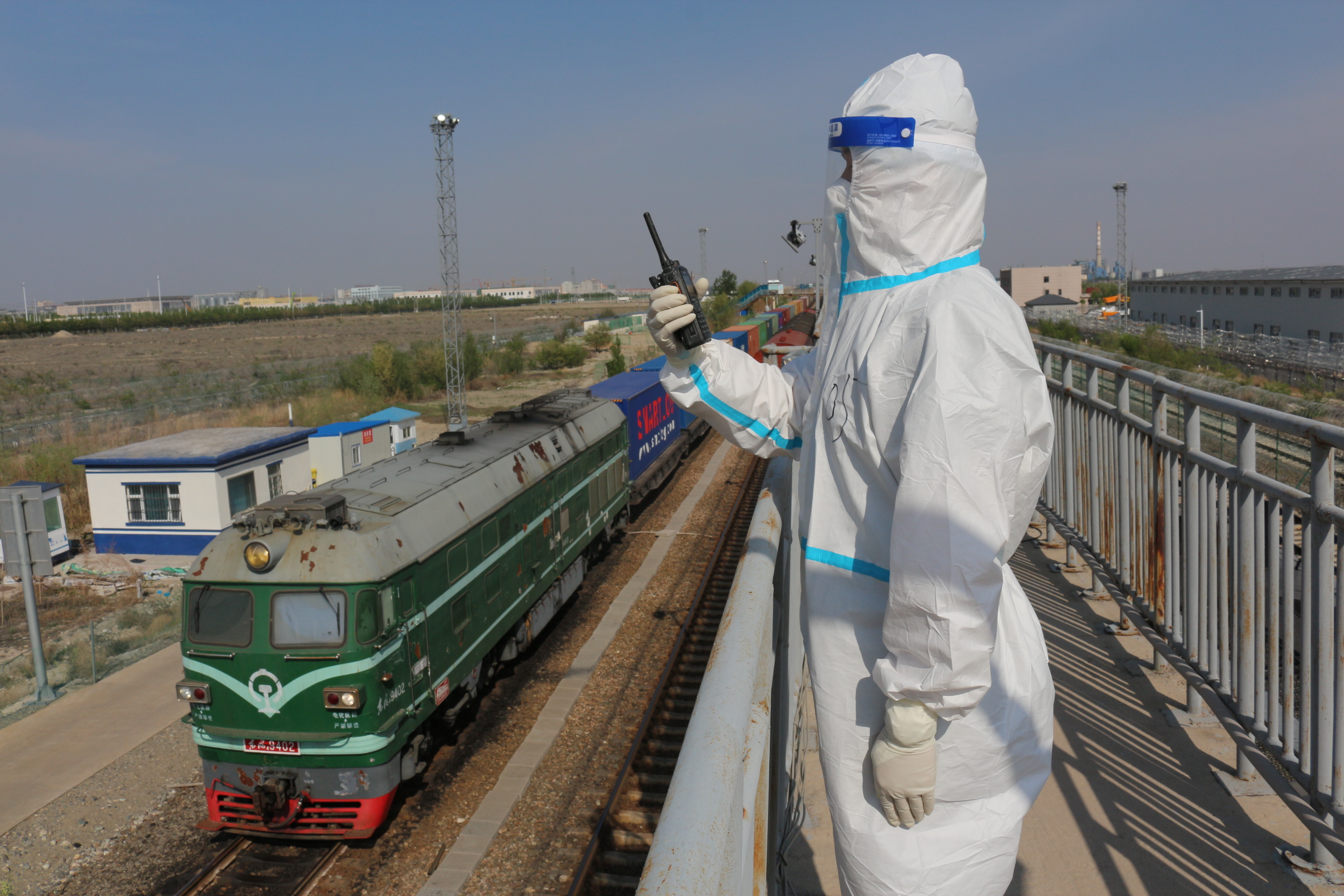 新疆平安網訊“負責證件查驗的民警現在開始上勤,車體檢查的民警按照分組,由車頭車尾向中間開始檢查,注意防護!”4月25日13時許,隨著陣陣轟鳴聲,一輛32節中歐班列停在了限定區域。新疆出入境邊防檢查總站霍爾果斯出入境邊防檢查站執勤一隊帶班人員在對講機里對勤務進行了部署安排。