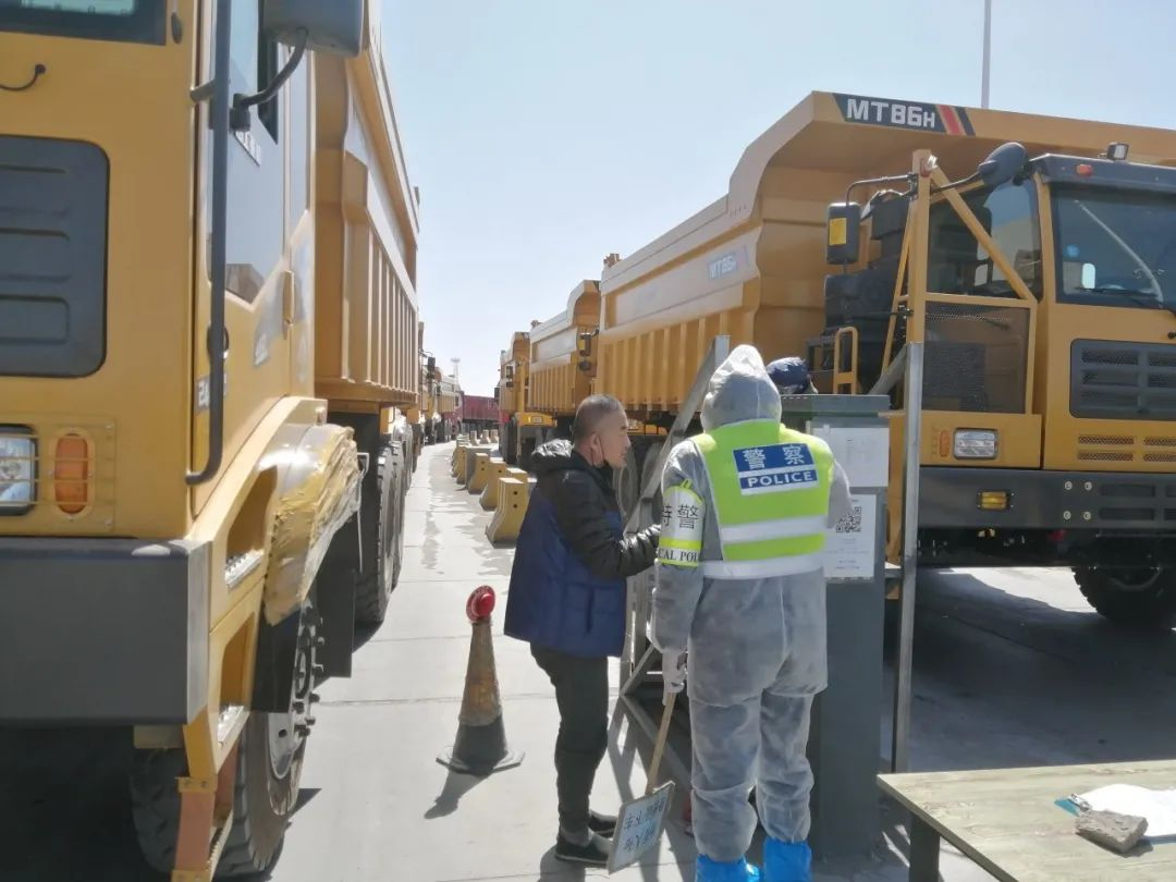 在執行疫情防控任務時,王建嬌帶領隊伍在哈密星星峽公安檢查站大車通行車道工作,對途經的車輛和人員進行檢查。