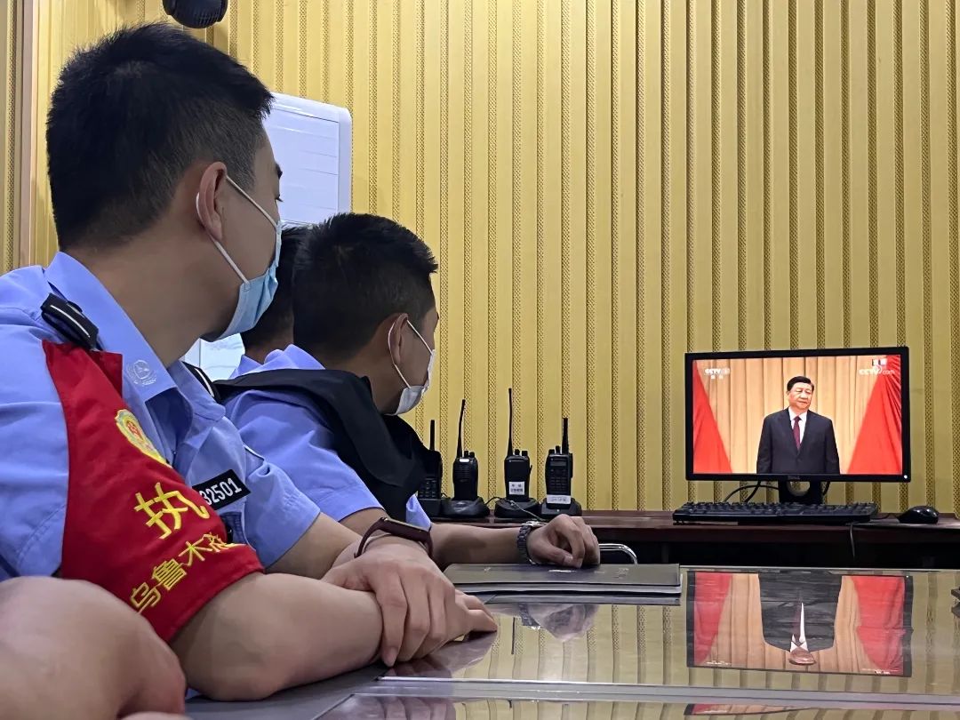 克孜勒蘇柯爾克孜自治州烏恰縣公安局全體民警、輔警收看大會實況,并在會后迅速掀起學習習近平總書記重要講話精神的熱潮。