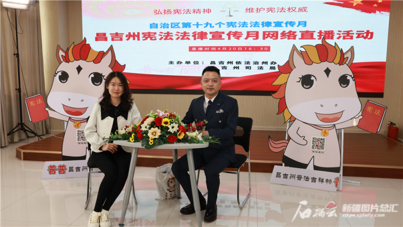 在博爾塔拉蒙古自治州,“997說法時間”法治欄目直播間開展了憲法、民法典等法律法規知識直播。