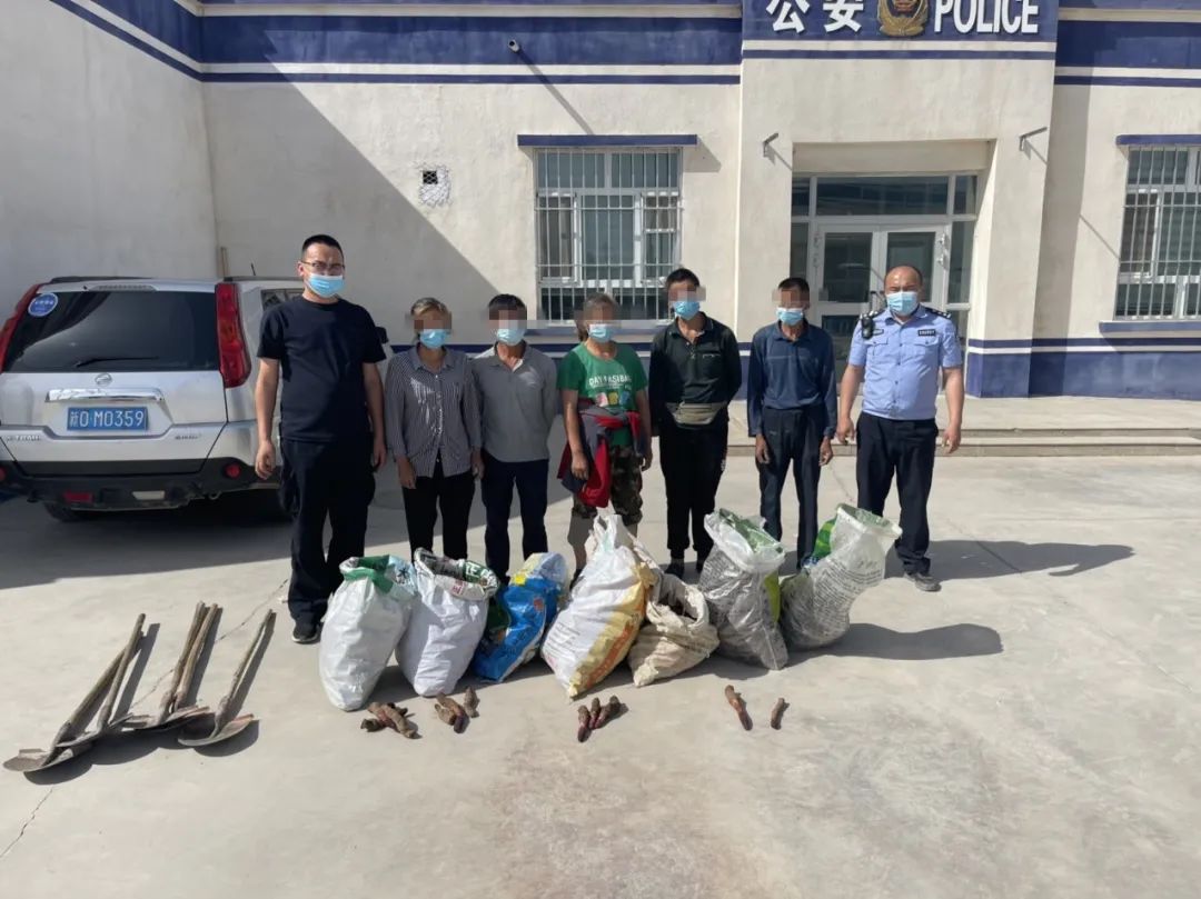 5月20日,巴音郭楞蒙古自治州和碩縣公安局那音克派出所民警在轄區一草場巡邏時,發現幾人正不斷揮舞鋤頭、鏟子等工具采挖草場植物。