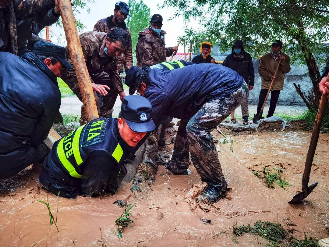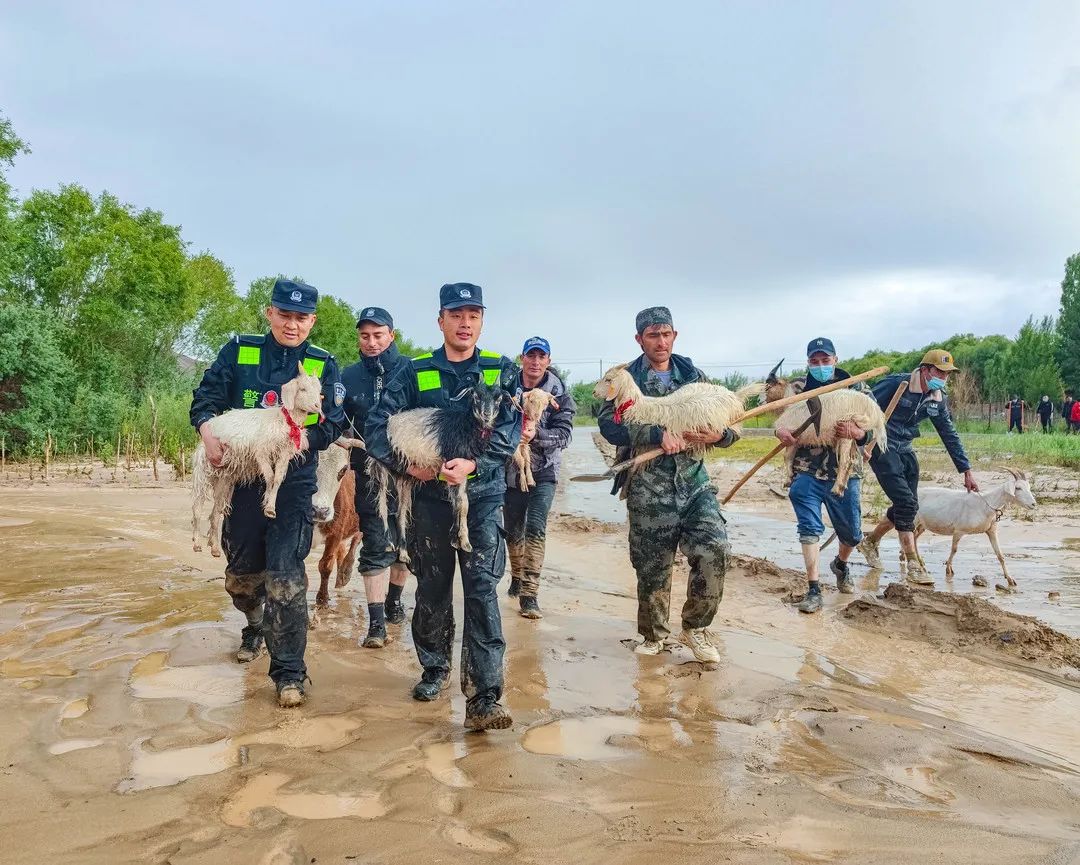 聽到呼救,李金趕緊放下手頭的工作,第一時間組織民輔警組成救援力量,趕往受災現(xiàn)場。當發(fā)現(xiàn)下水通道被洪水沖夾的雜物阻塞,無法正常排水,他毫不猶豫地跳入水坑,彎下腰清理雜物……疏通了下水道,想著有老鄉(xiāng)家中的牛羊還在圈中,如果不及時轉(zhuǎn)移,很有可能會被洪水沖走了,他不顧身上已經(jīng)濕透、滿是淤泥的衣物,又迅速投入到幫助老鄉(xiāng)轉(zhuǎn)移家中財產(chǎn)和牲畜的“戰(zhàn)斗”當中……
