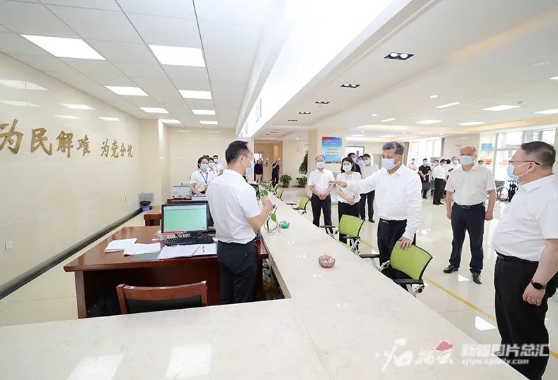 6月15日,自治區黨委書記馬興瑞在自治區人民群眾信訪服務中心接訪大廳,聽取自治區信訪部門接待群眾來訪和網上信訪情況匯報。石榴云/新疆日報記者 崔志堅攝