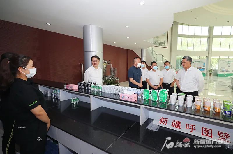 6月19日,自治區(qū)黨委書(shū)記馬興瑞在西域春乳業(yè)詳細(xì)了解企業(yè)品牌建設(shè)、產(chǎn)品銷售以及吸納大學(xué)畢業(yè)生就業(yè)等情況。石榴云/新疆日?qǐng)?bào)記者 崔志堅(jiān)攝