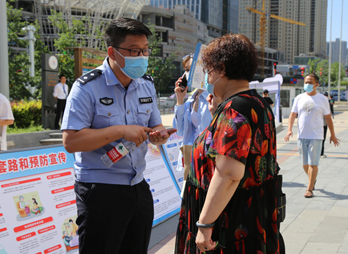 當天,烏魯木齊市、區兩級公安、法院、檢察、司法、民政等打擊整治養老詐騙專項行動成員單位工作人員,向群眾發放了反詐宣傳單并現場向群眾講解反詐知識,開展法律咨詢服務。