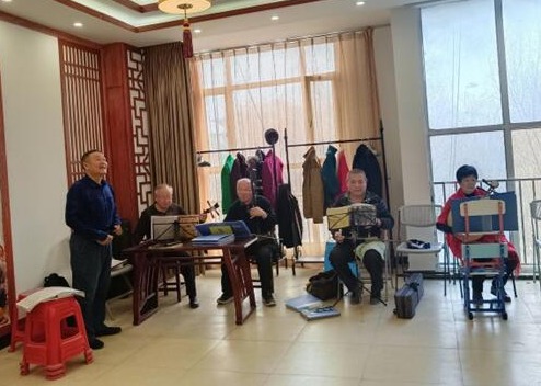 同一時間,在實踐所戲曲館,退休居民張國安正和戲曲愛好者們排練節目,老人們個個精神抖擻,有唱有奏,一派和諧。